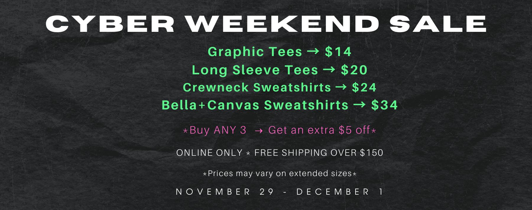 In addition to curating high-quality, trendy and affordable clothing, we also design and print our own graphic tees in house. Custom orders are welcome!