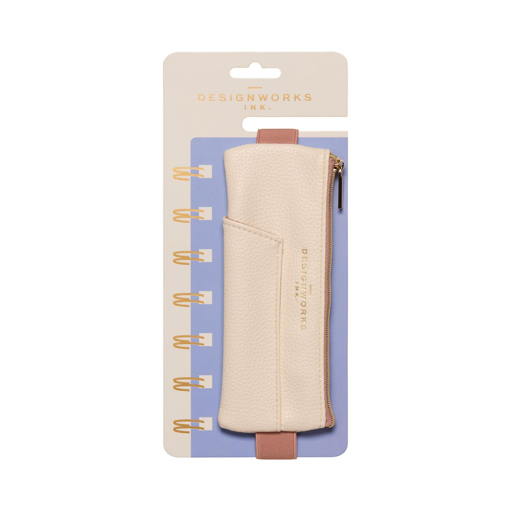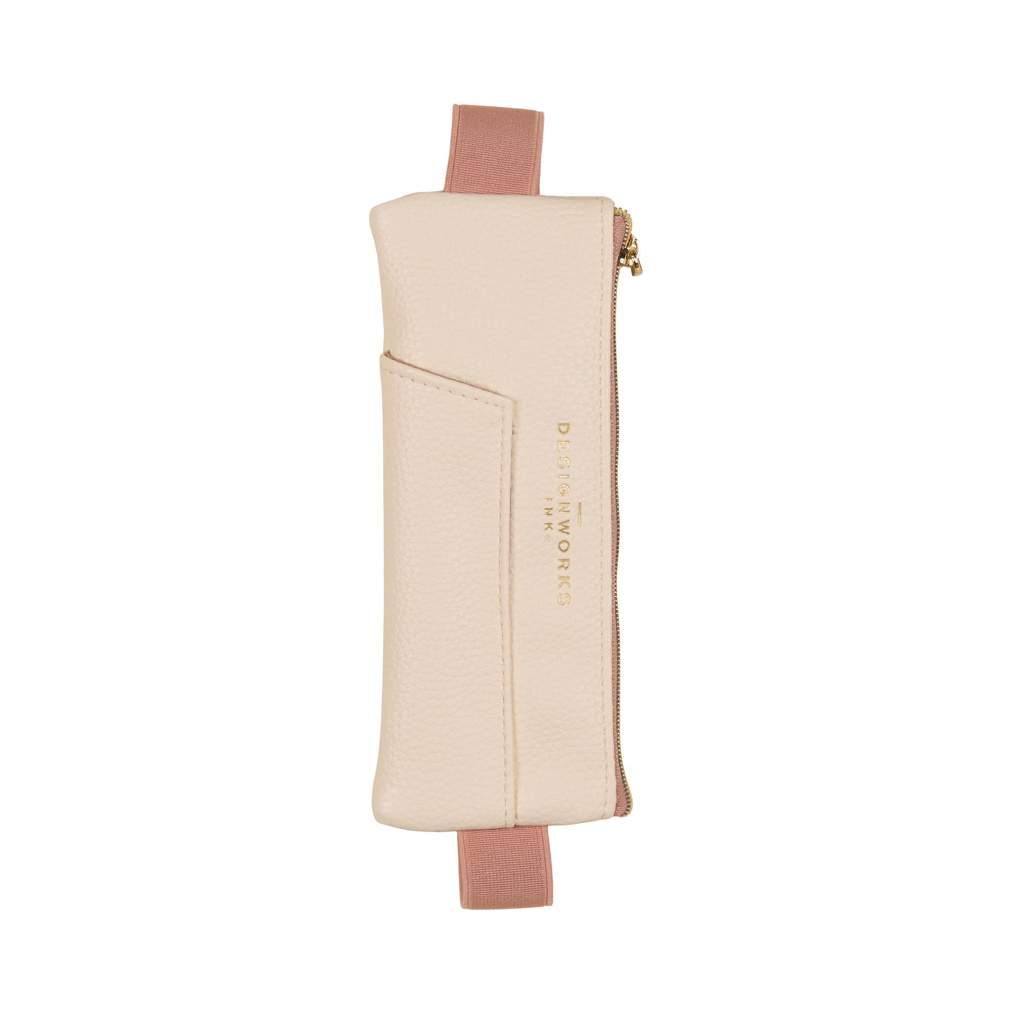 Keep your writing essentials right where you need them with our Vegan Leather Pen Pouch. Designed in a chic cream and taupe color block with a luxe gold zipper, this pouch isn’t just practical—it’s stylish too. The adjustable elastic band secures neatly around your favorite journal or planner, so your pens, markers, and small accessories are always within reach.