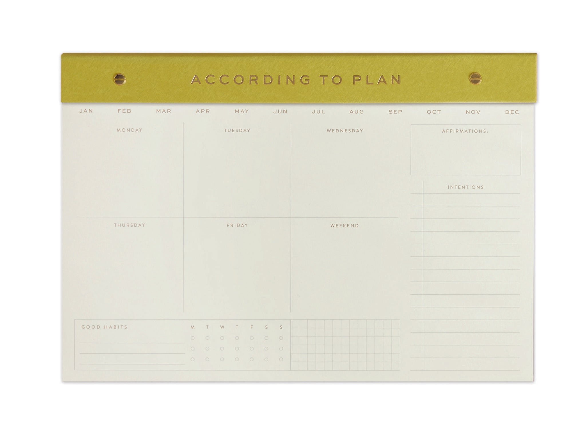 Bound with a luxe leatherette header and gold foil detail, each tear-off sheet makes planning feel just a little more elevated.