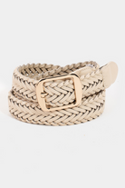 Add the perfect finishing touch to any outfit with this braided faux leather belt. Featuring a sleek gold-tone buckle and a timeless woven design, it’s a versatile piece that can be styled with jeans, dresses, or layered over a blazer for a chic, pulled-together look. Available in both ivory and khaki, this belt is an easy choice for elevating your everyday wardrobe.