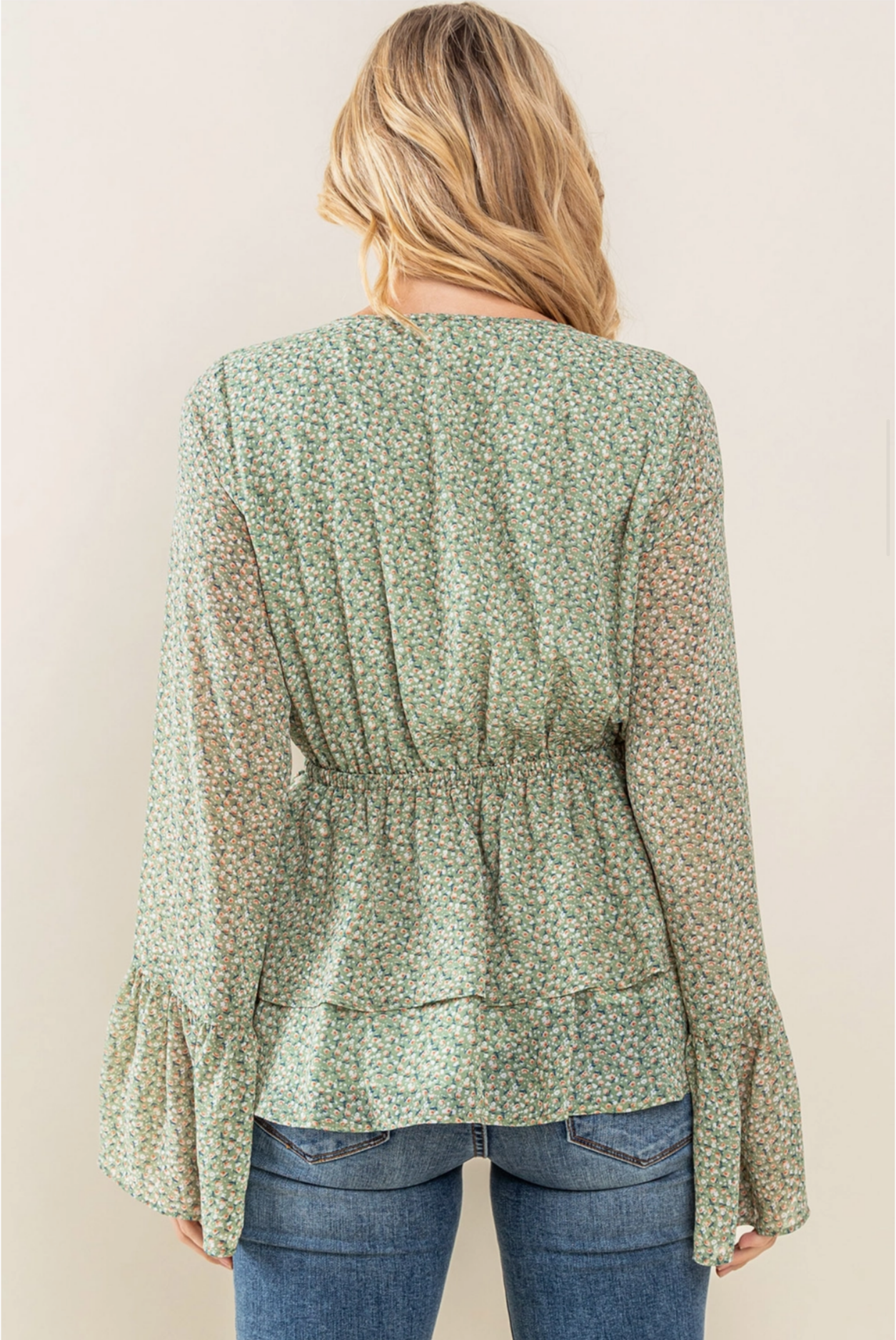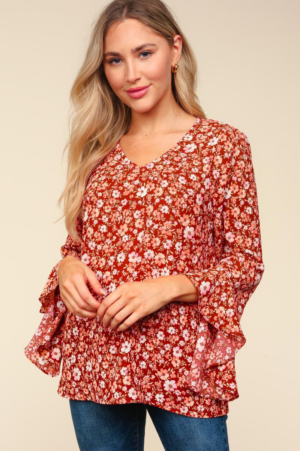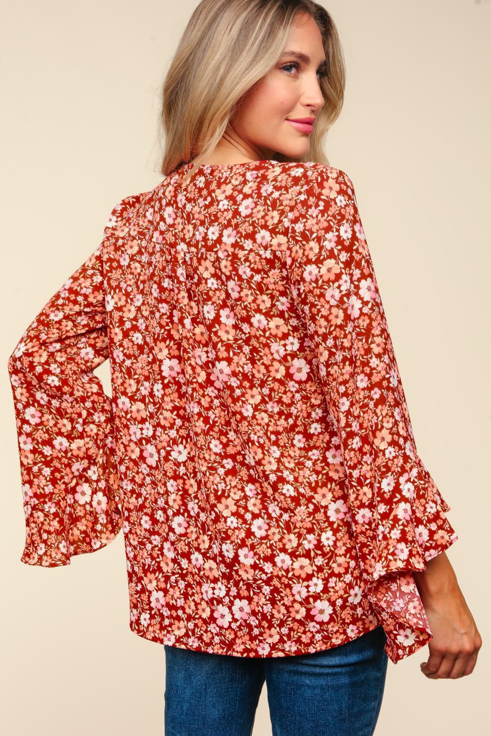 Floral Chiffon Blouse with Bell Sleeves