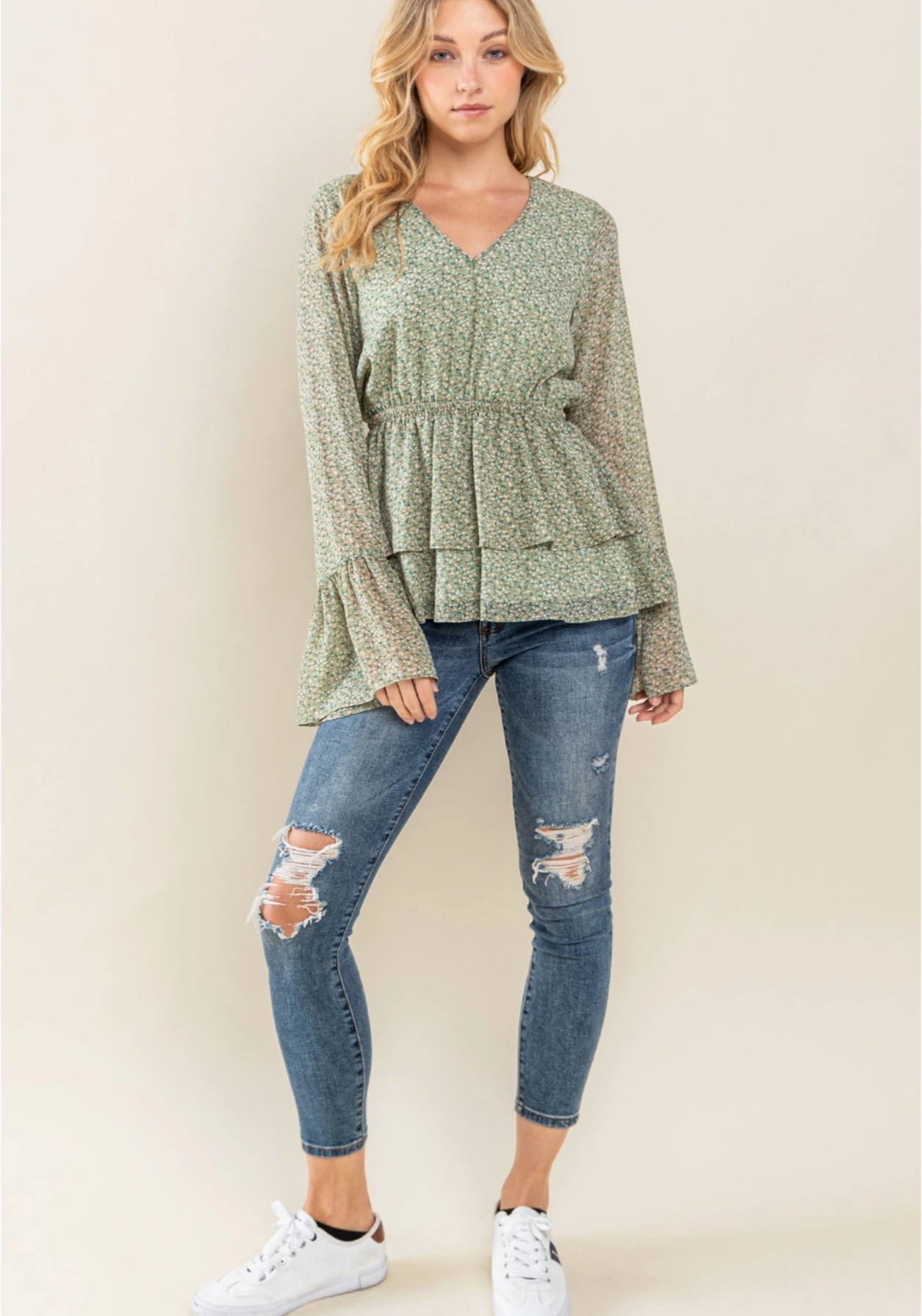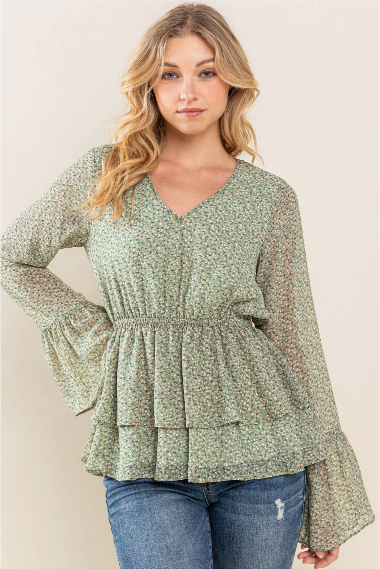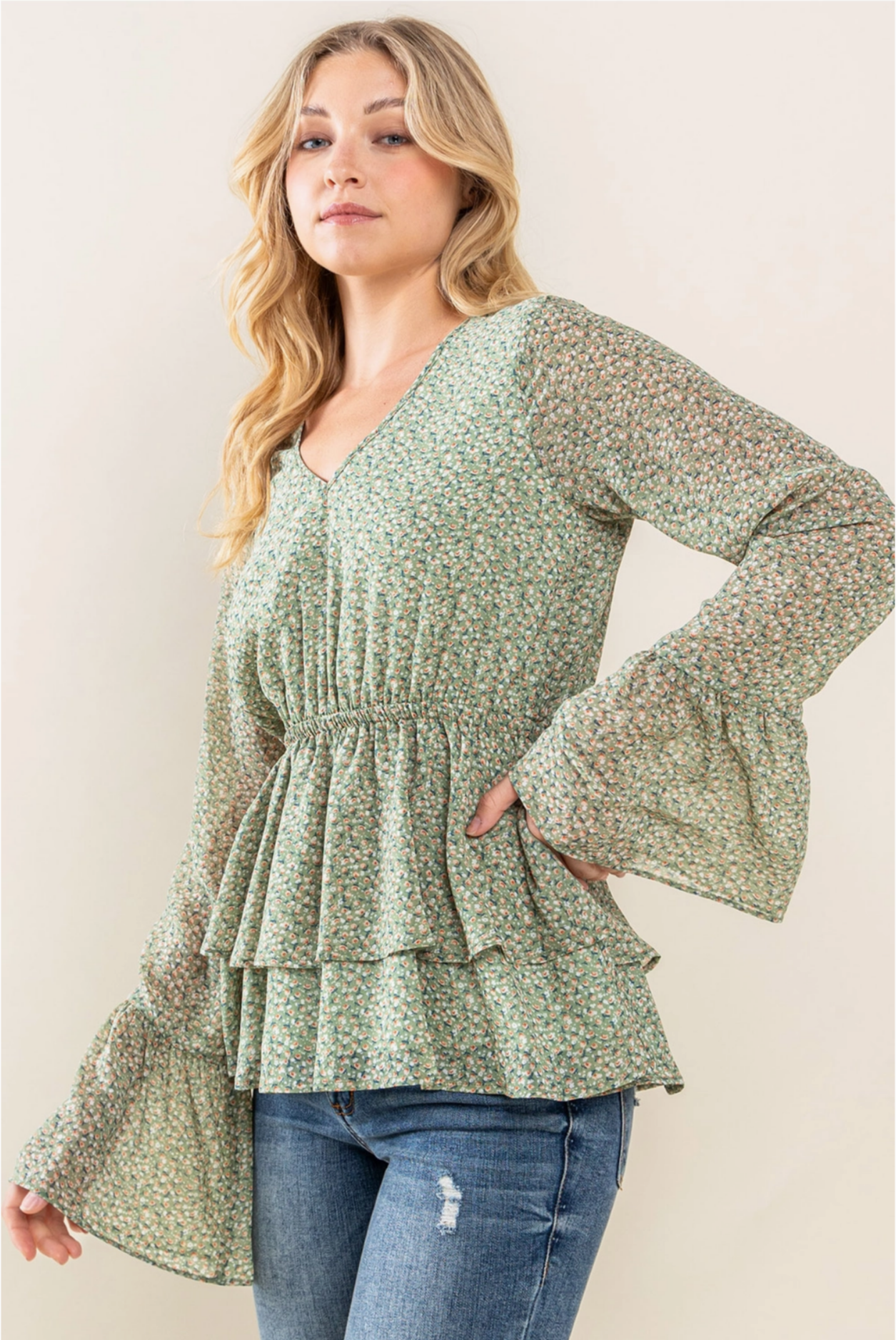 Floral Chiffon Blouse with Bell Sleeves