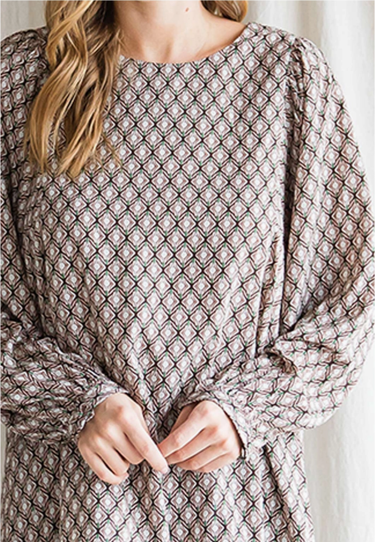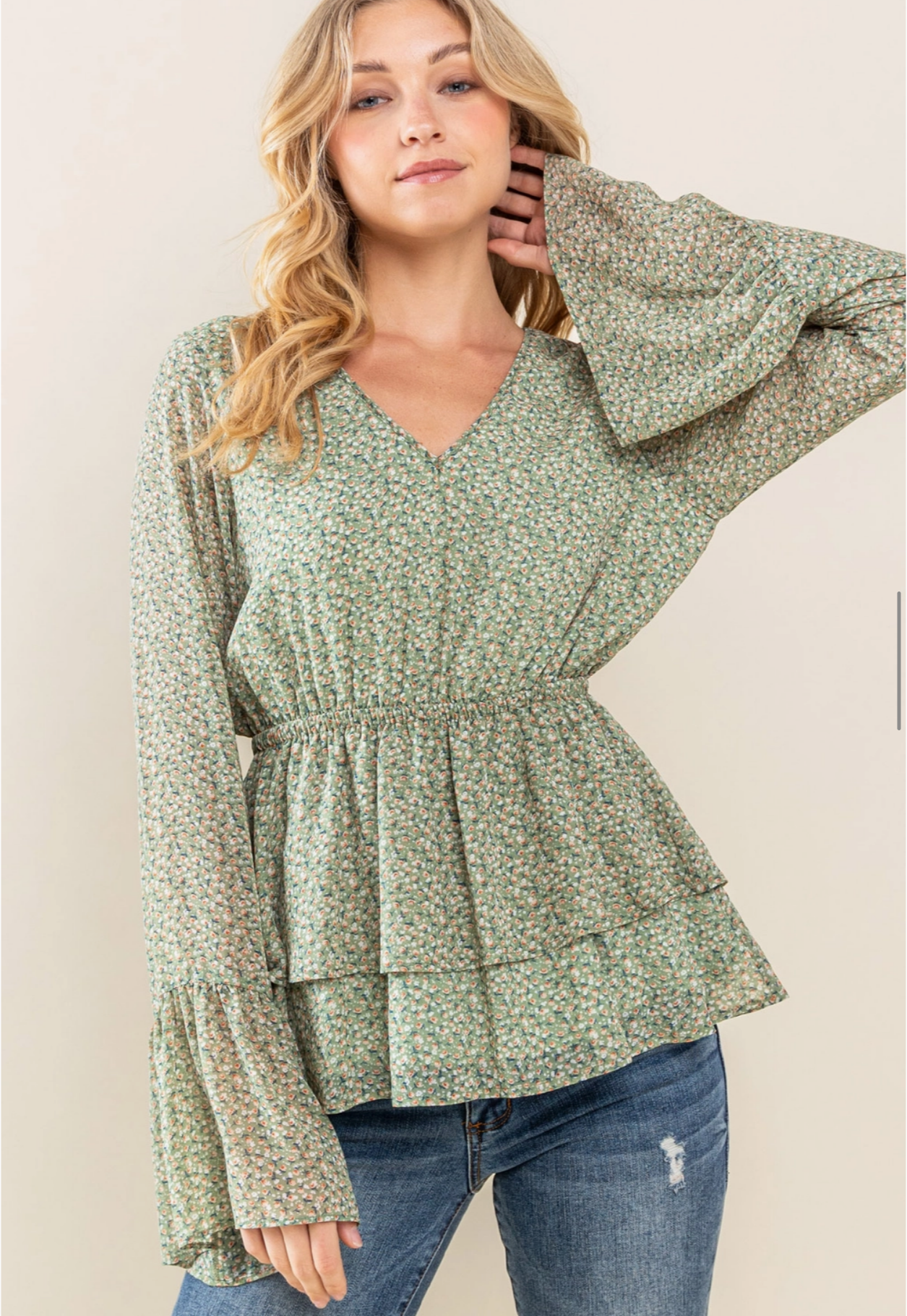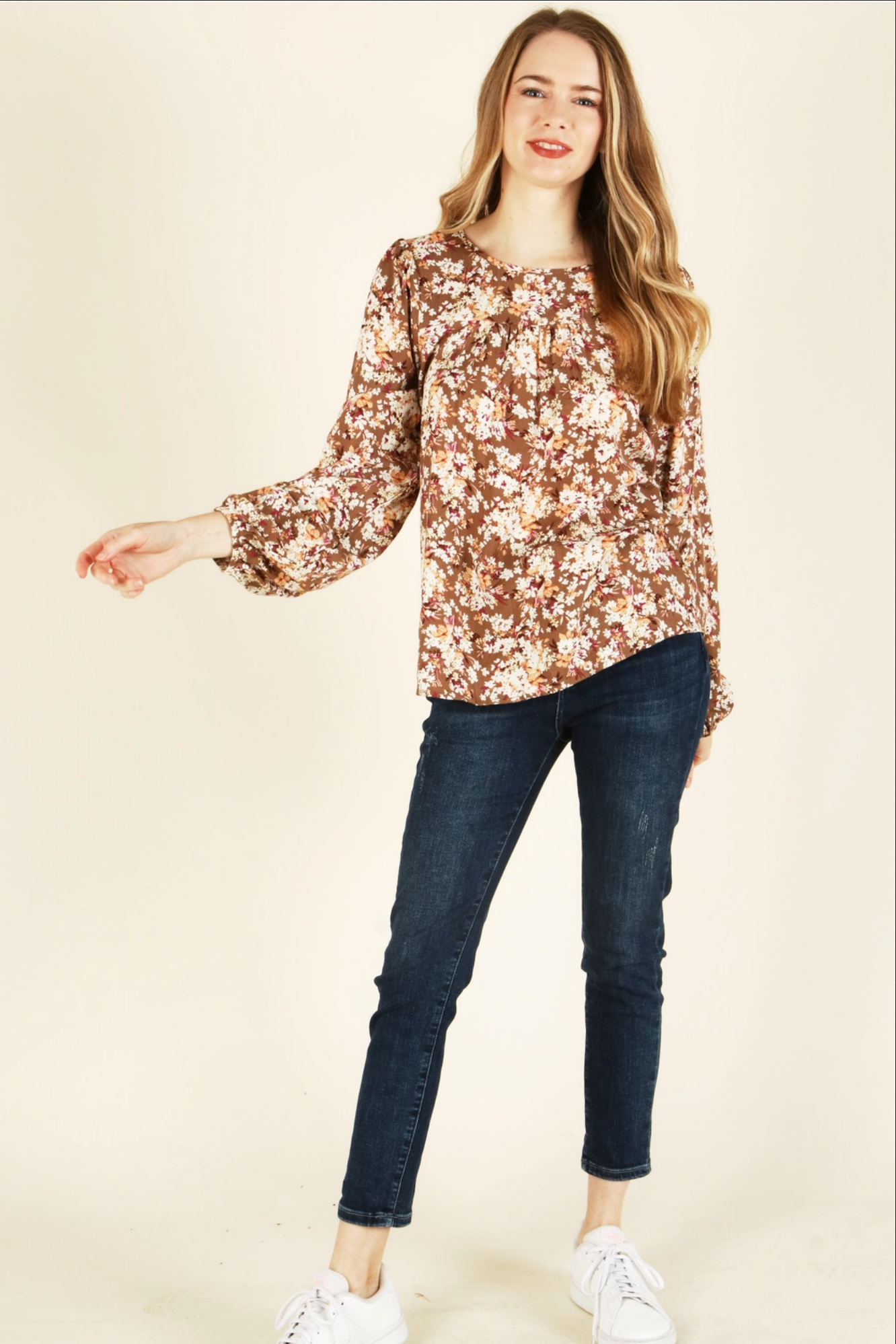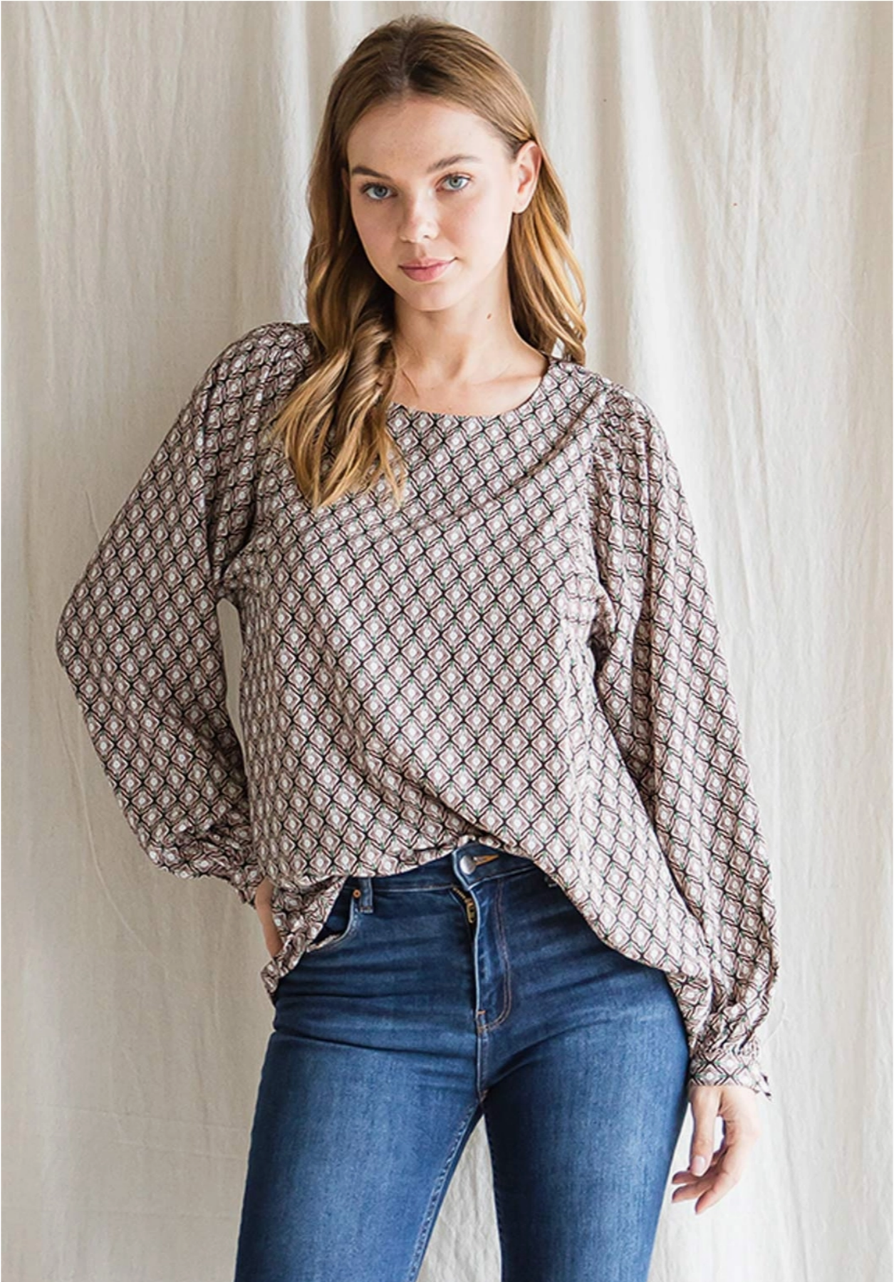 Woven Floral Long Sleeve Top - Back Button Key Hole