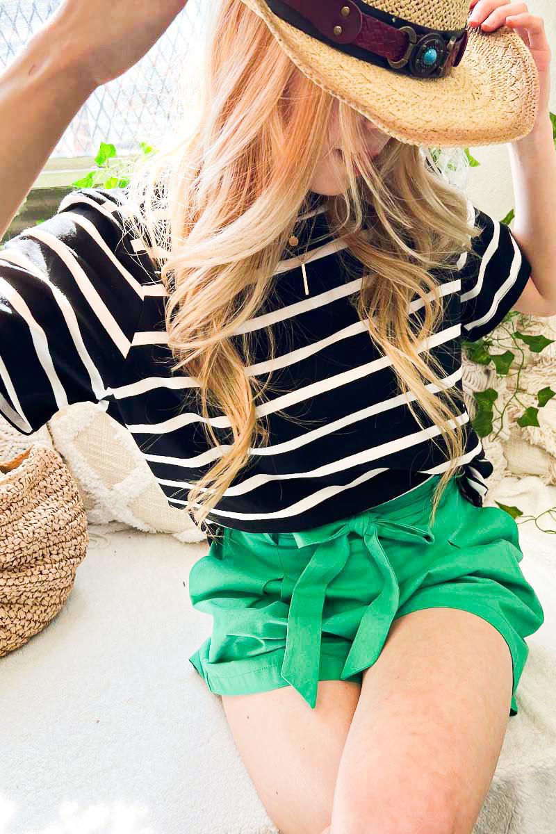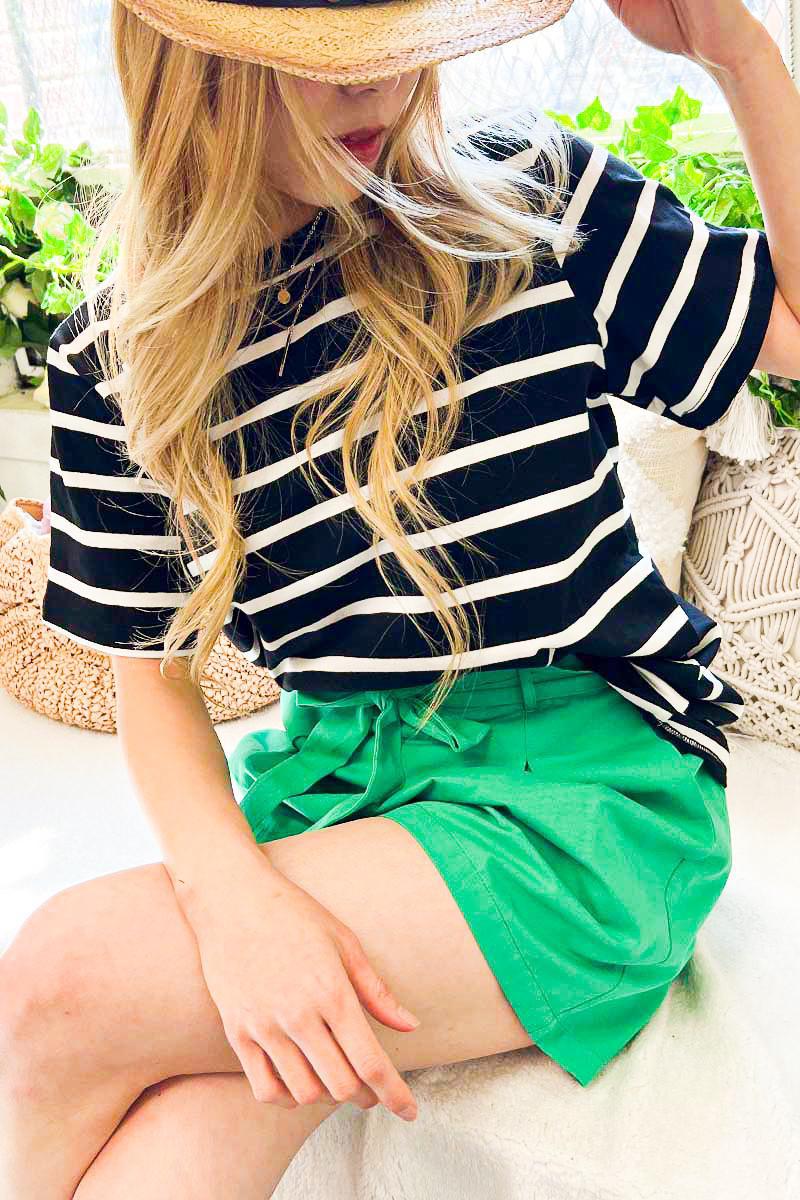 Boat Neck Dolman Sleeve Striped Top