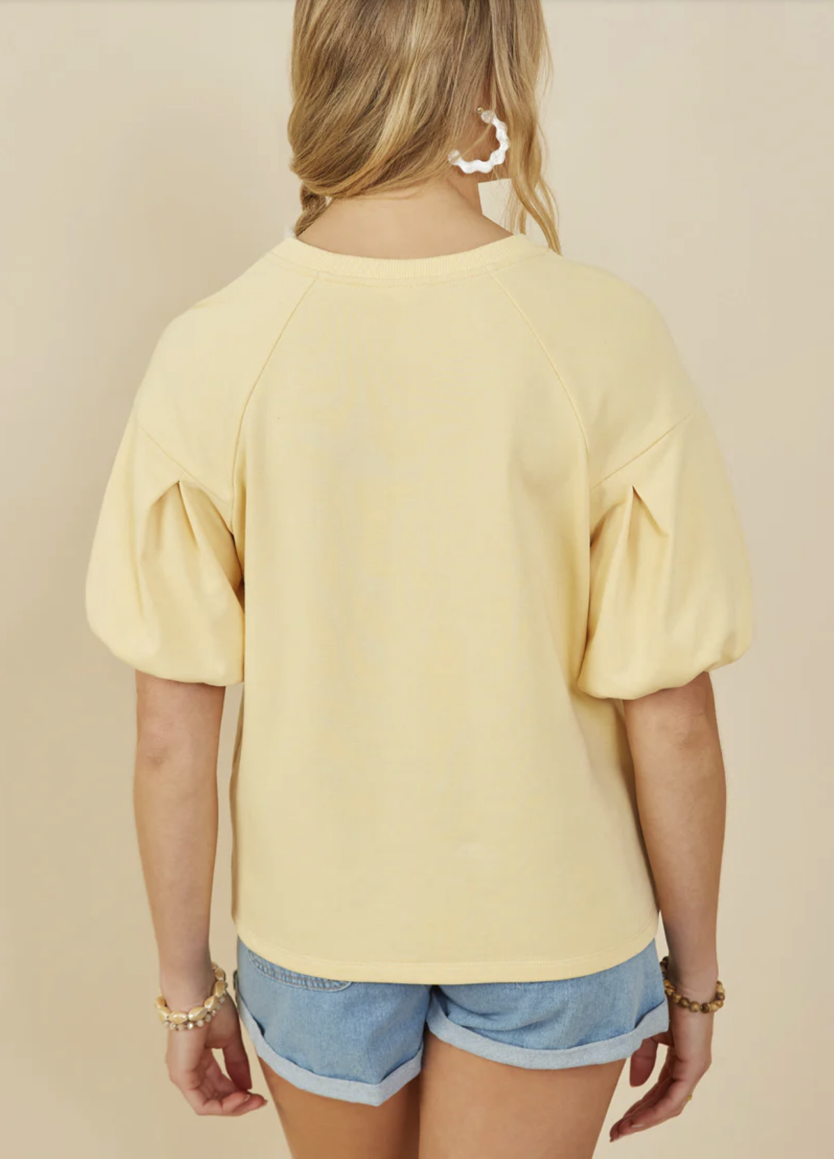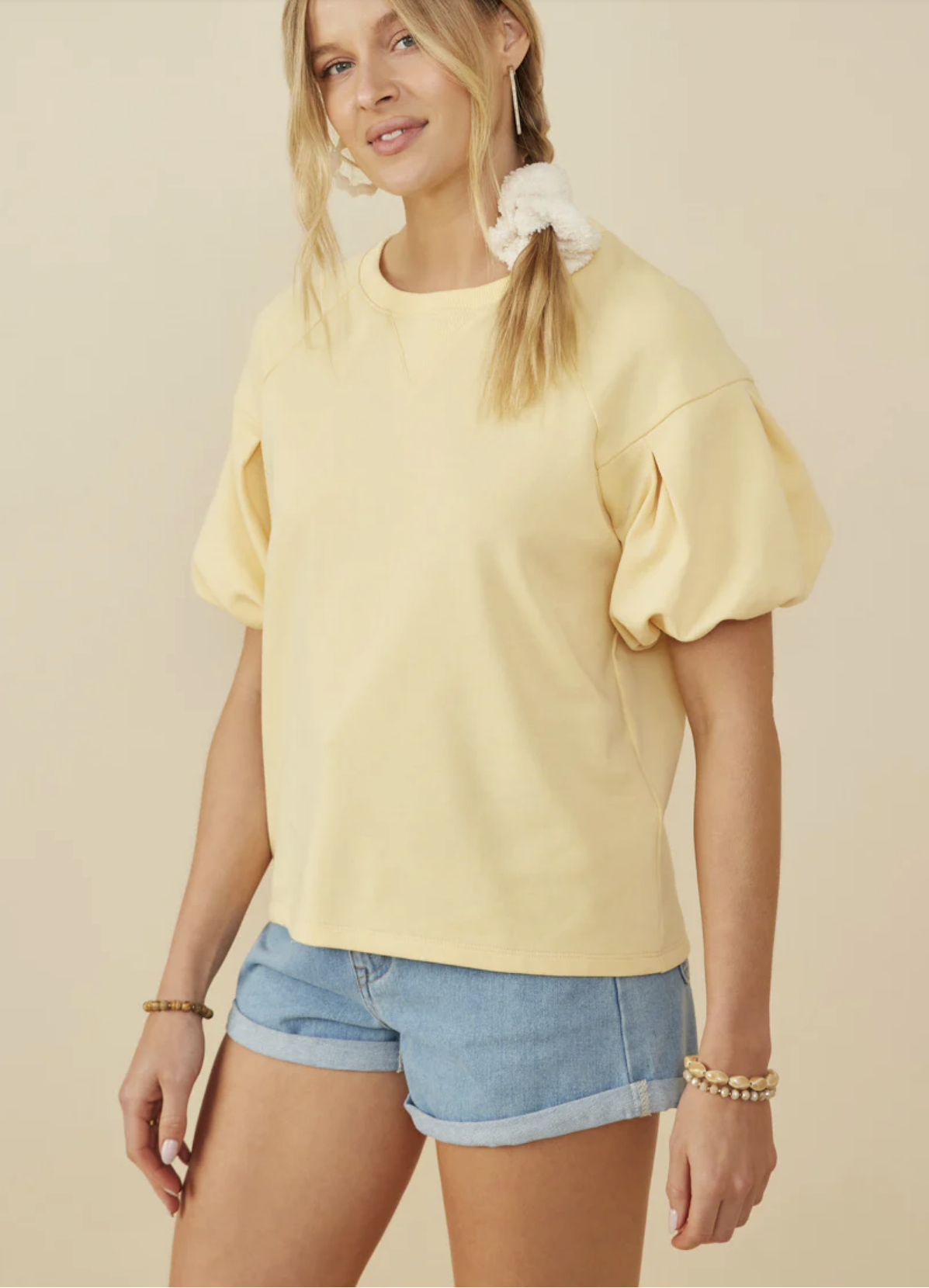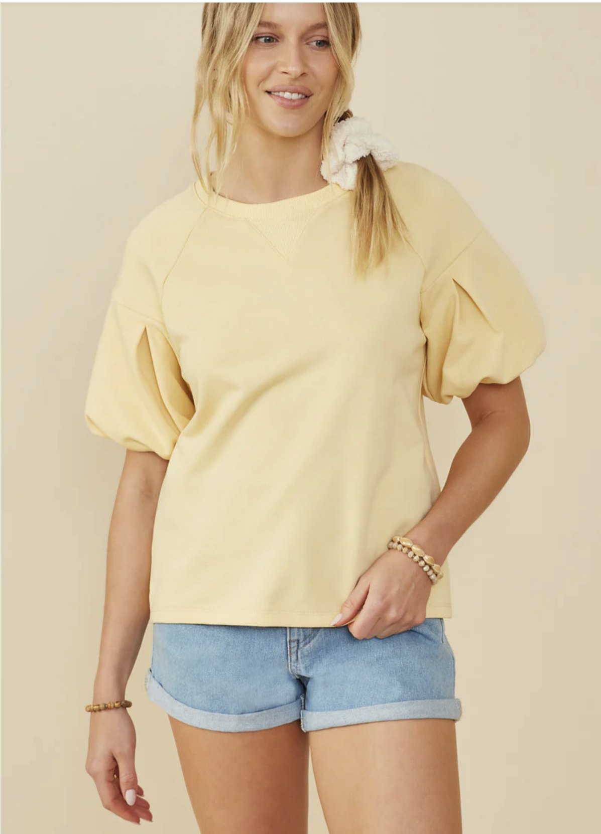 Box Pleat Puff Sleeve French Terry Top