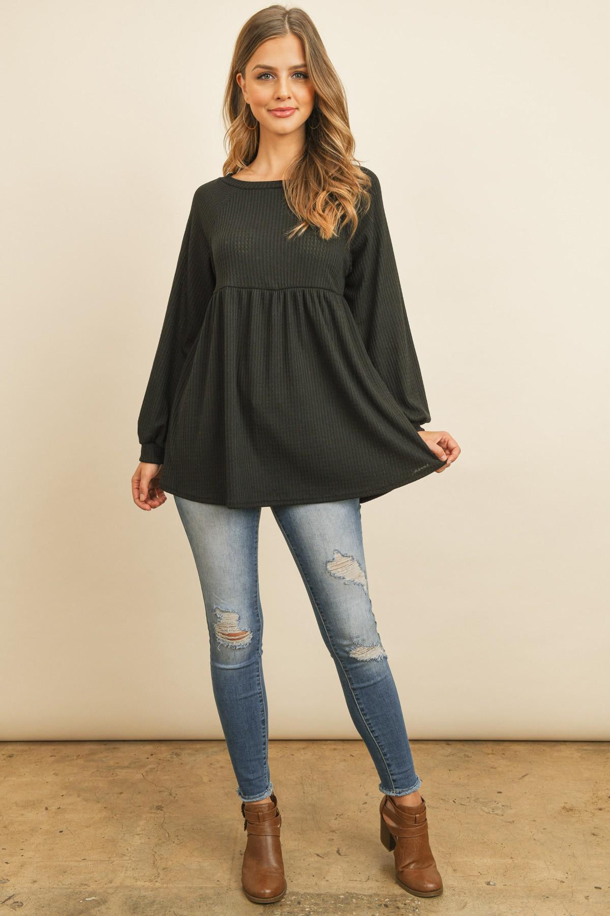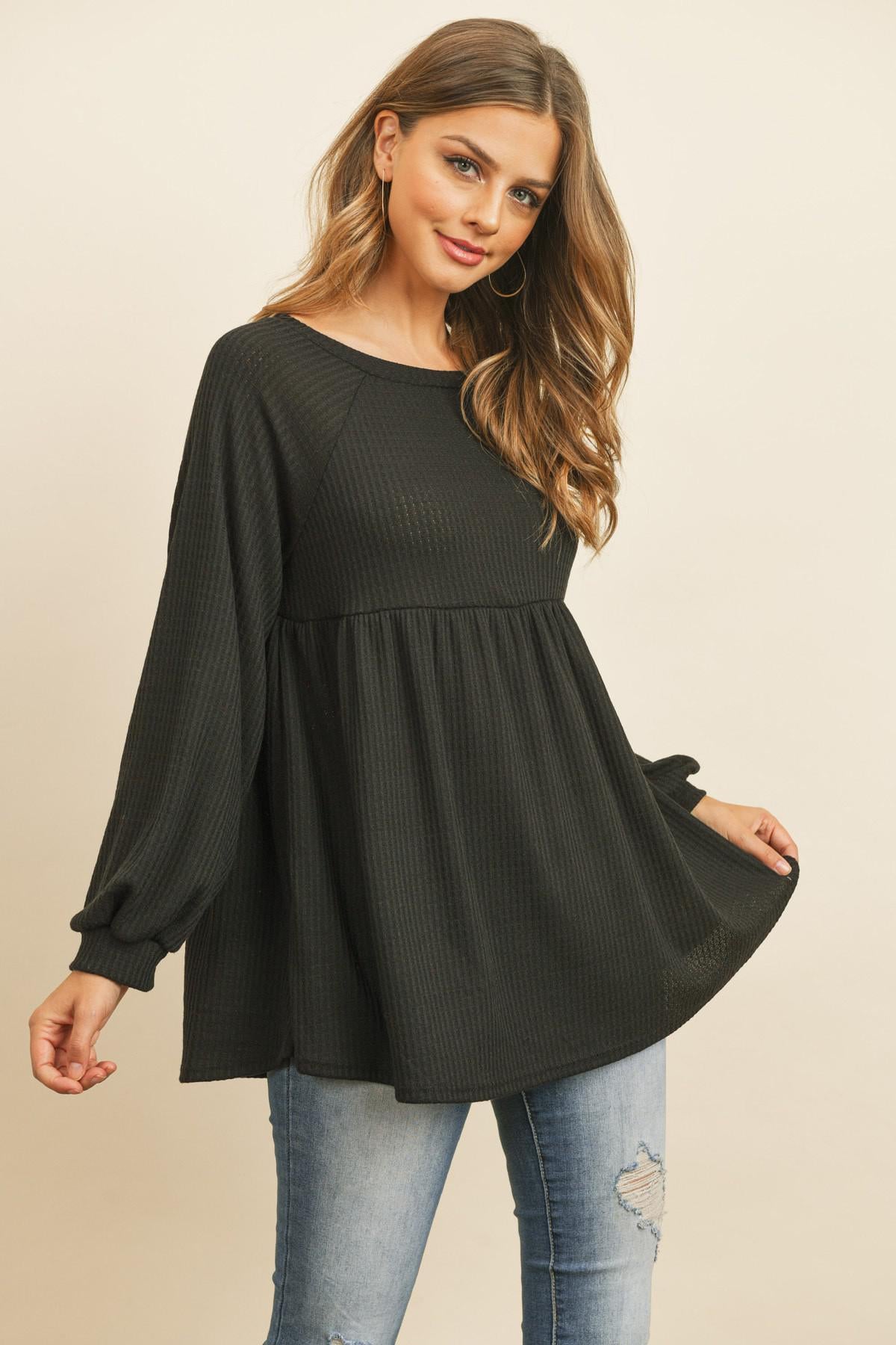 Baby Doll Waffle Long Sleeve Top
