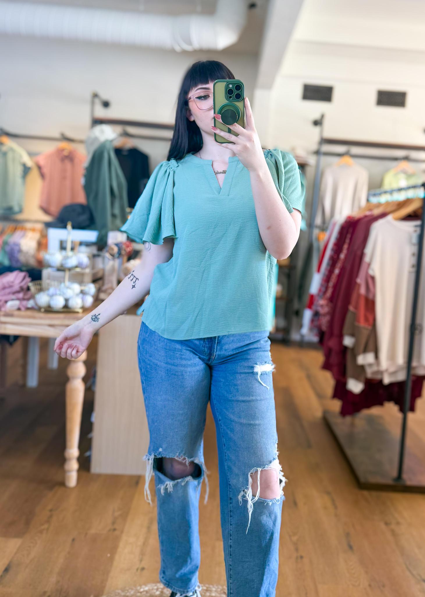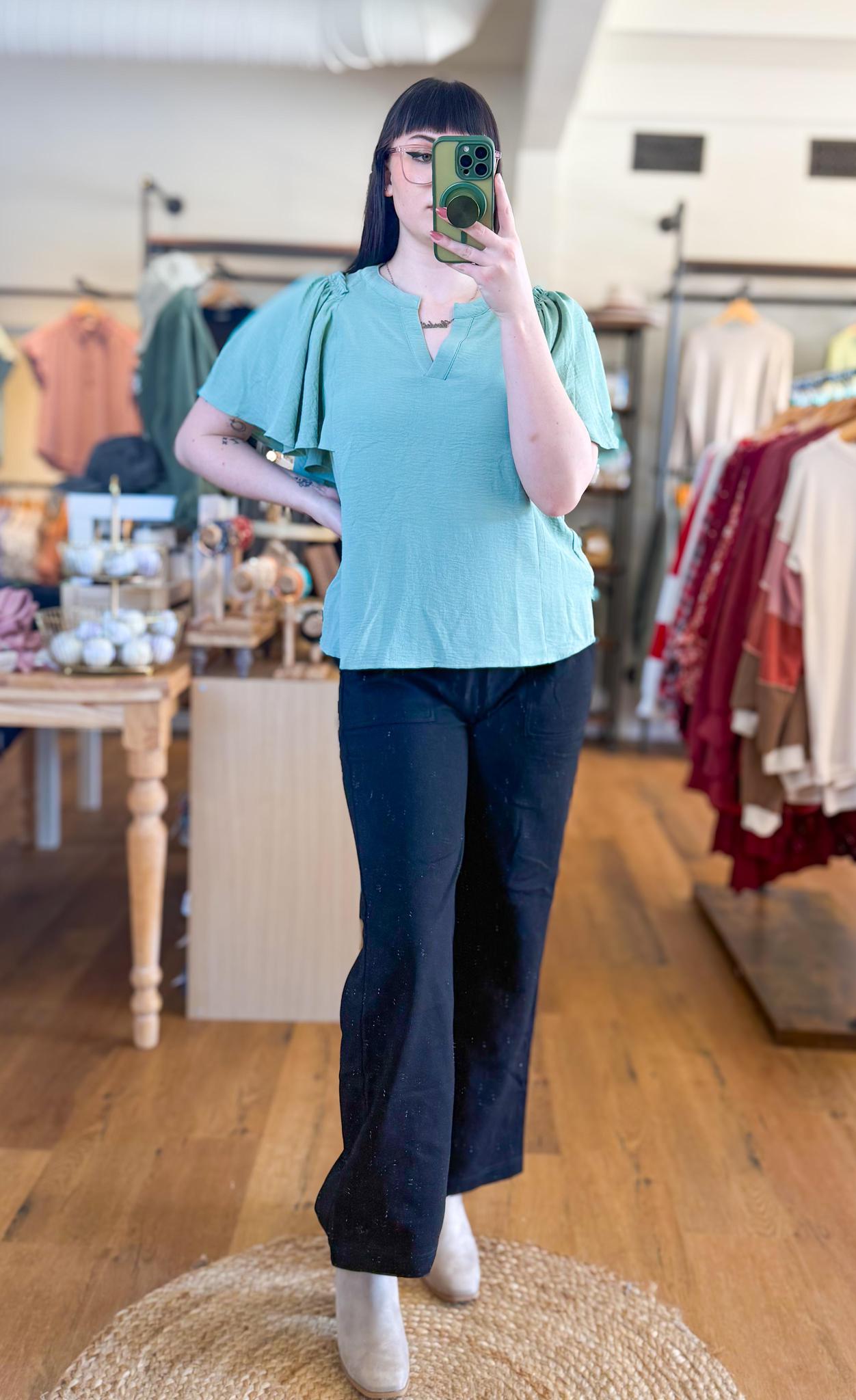 Split Neck Flutter Sleeve Top
