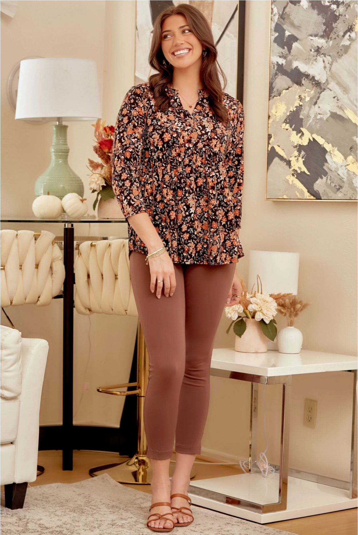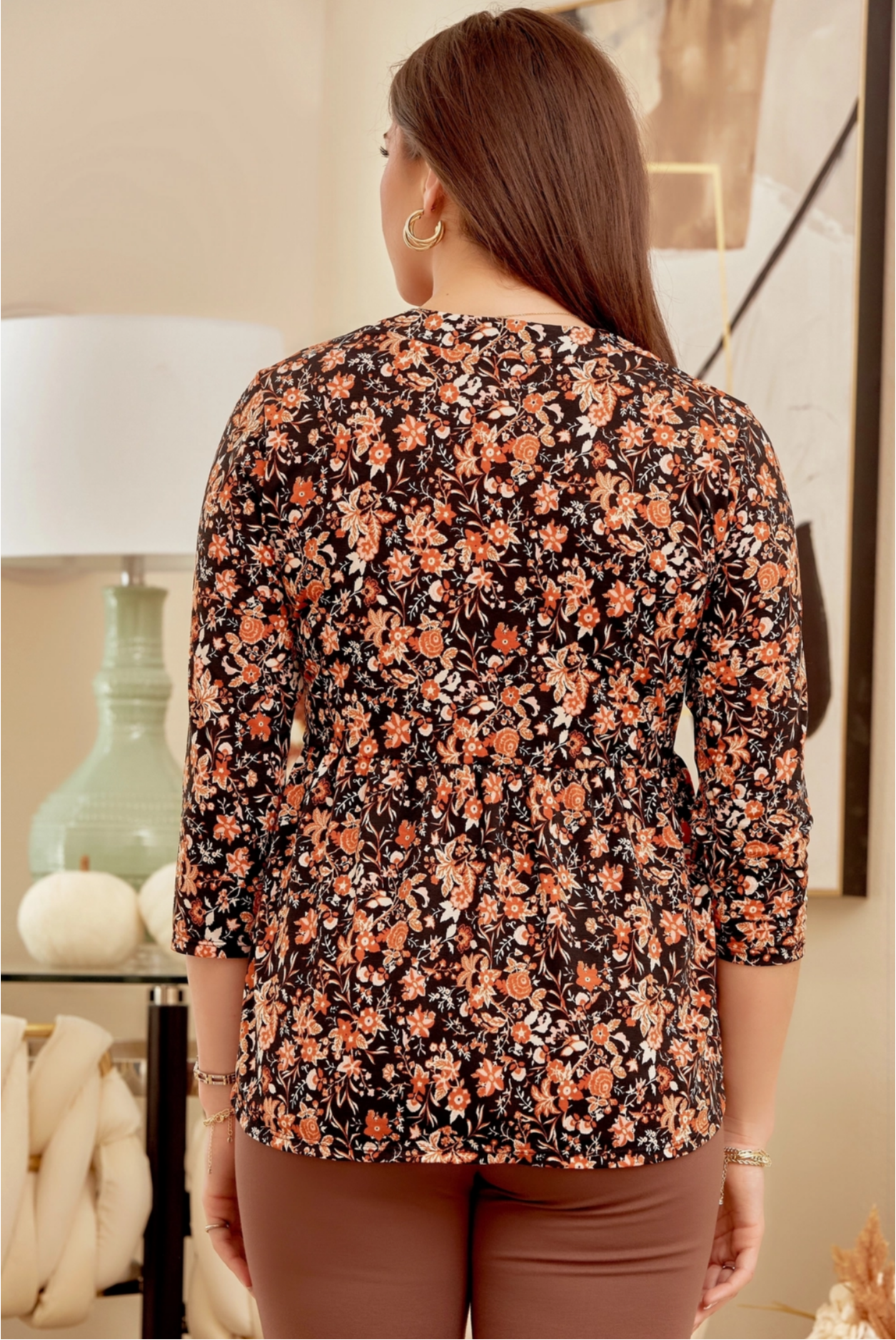 Lizzy Top - Black Rust Floral