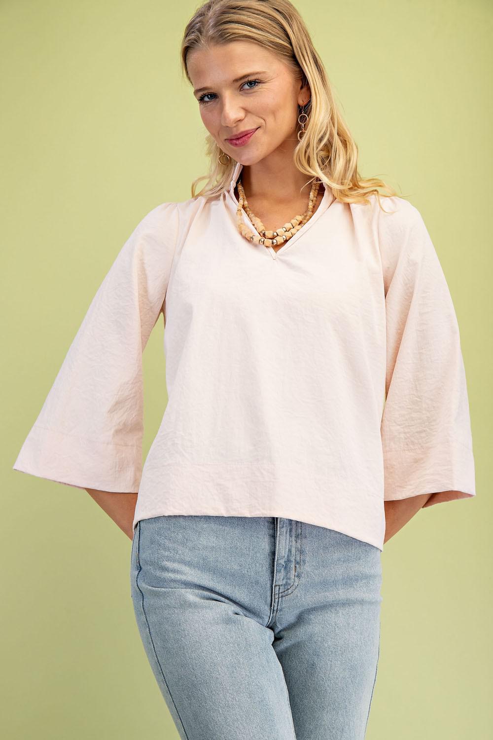 3/4 Sleeve Solid Woven Blouse