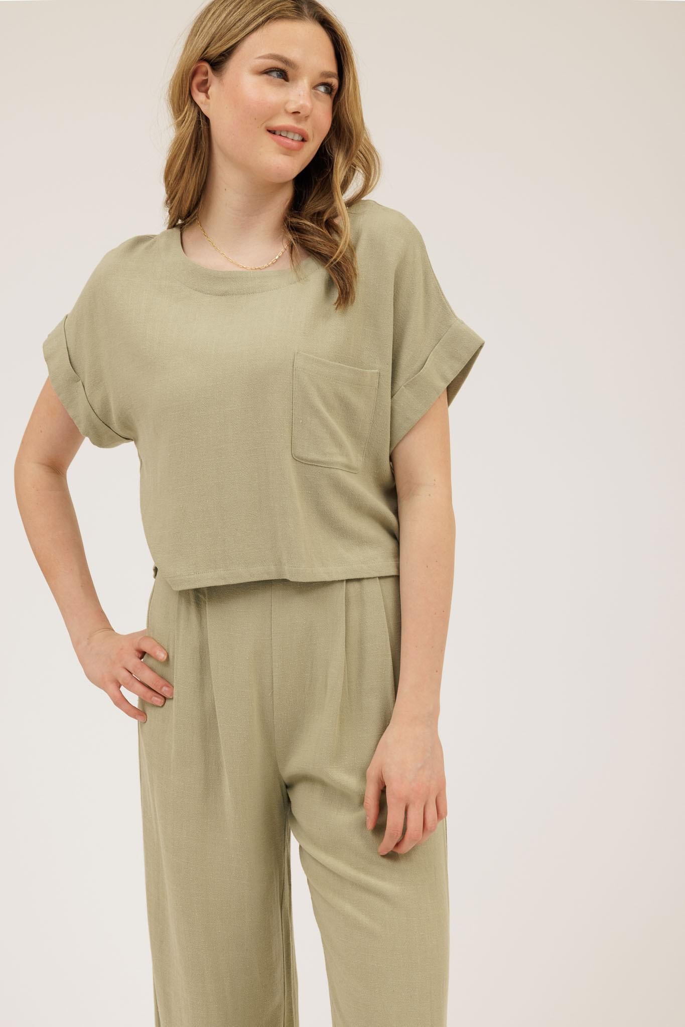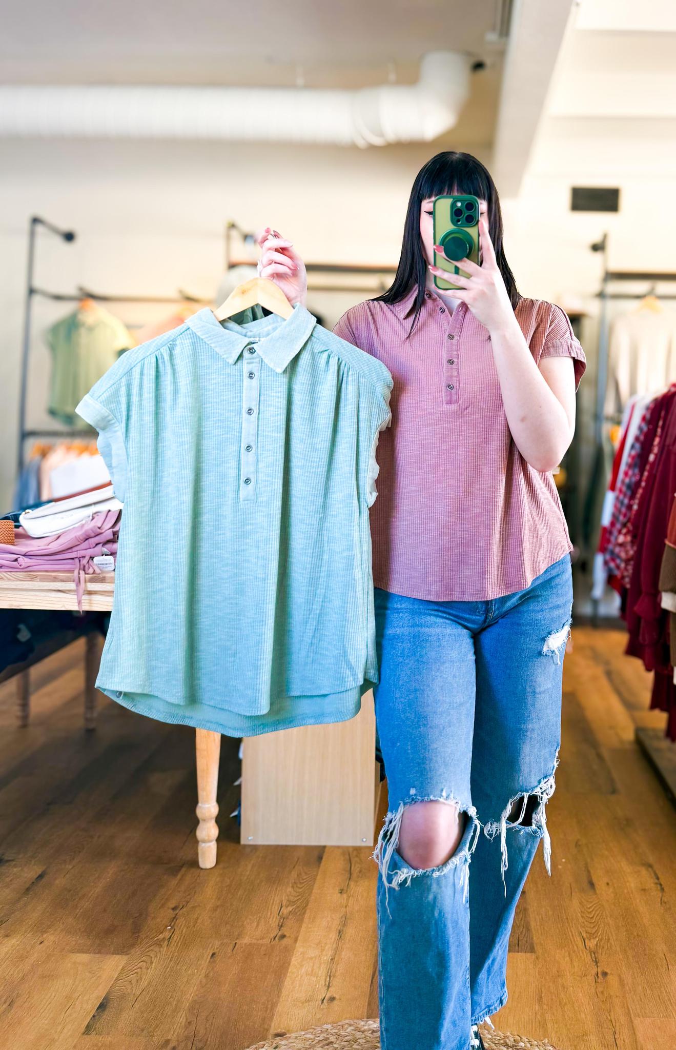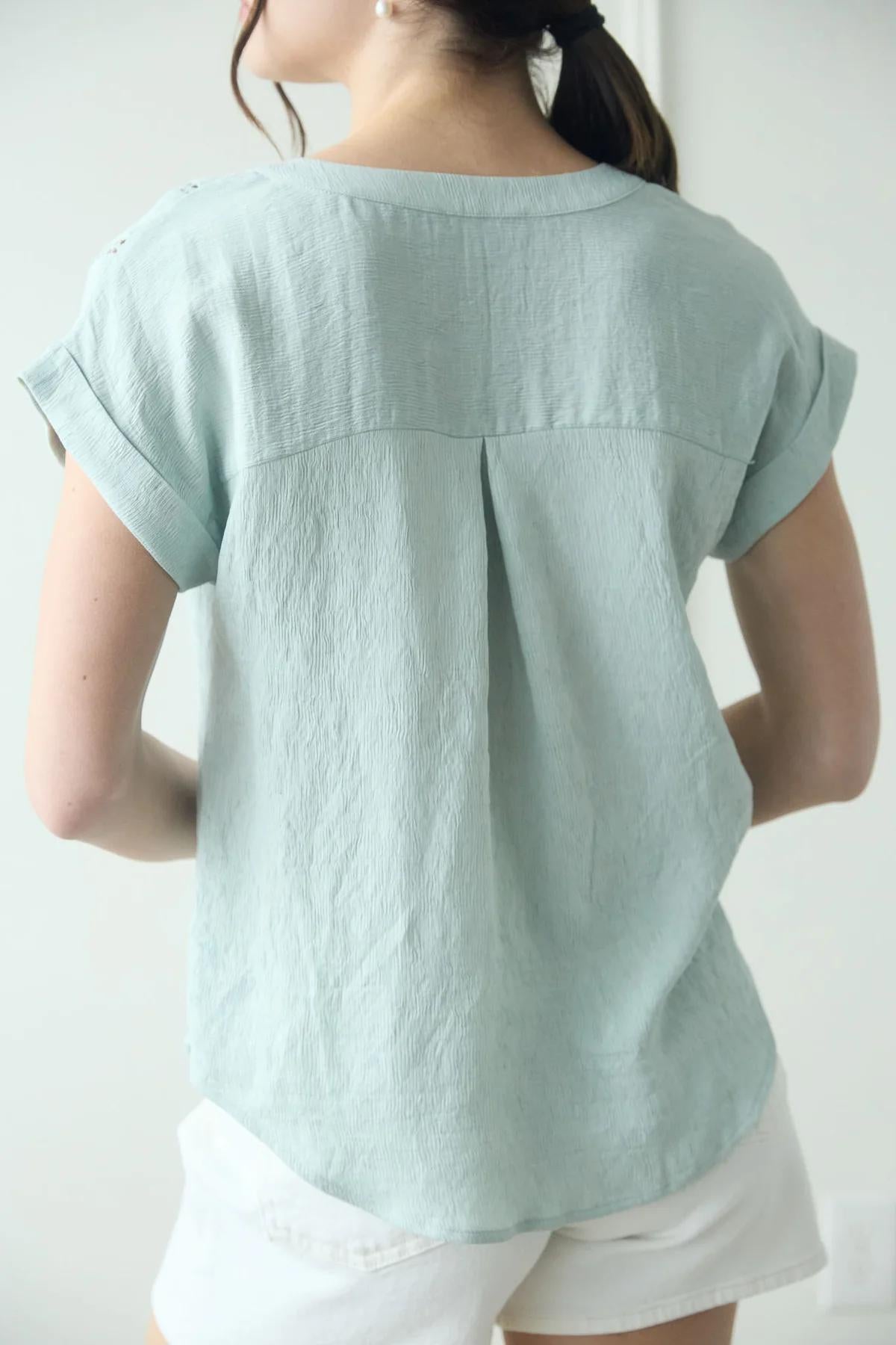 Casual Button Down Tee - Sage