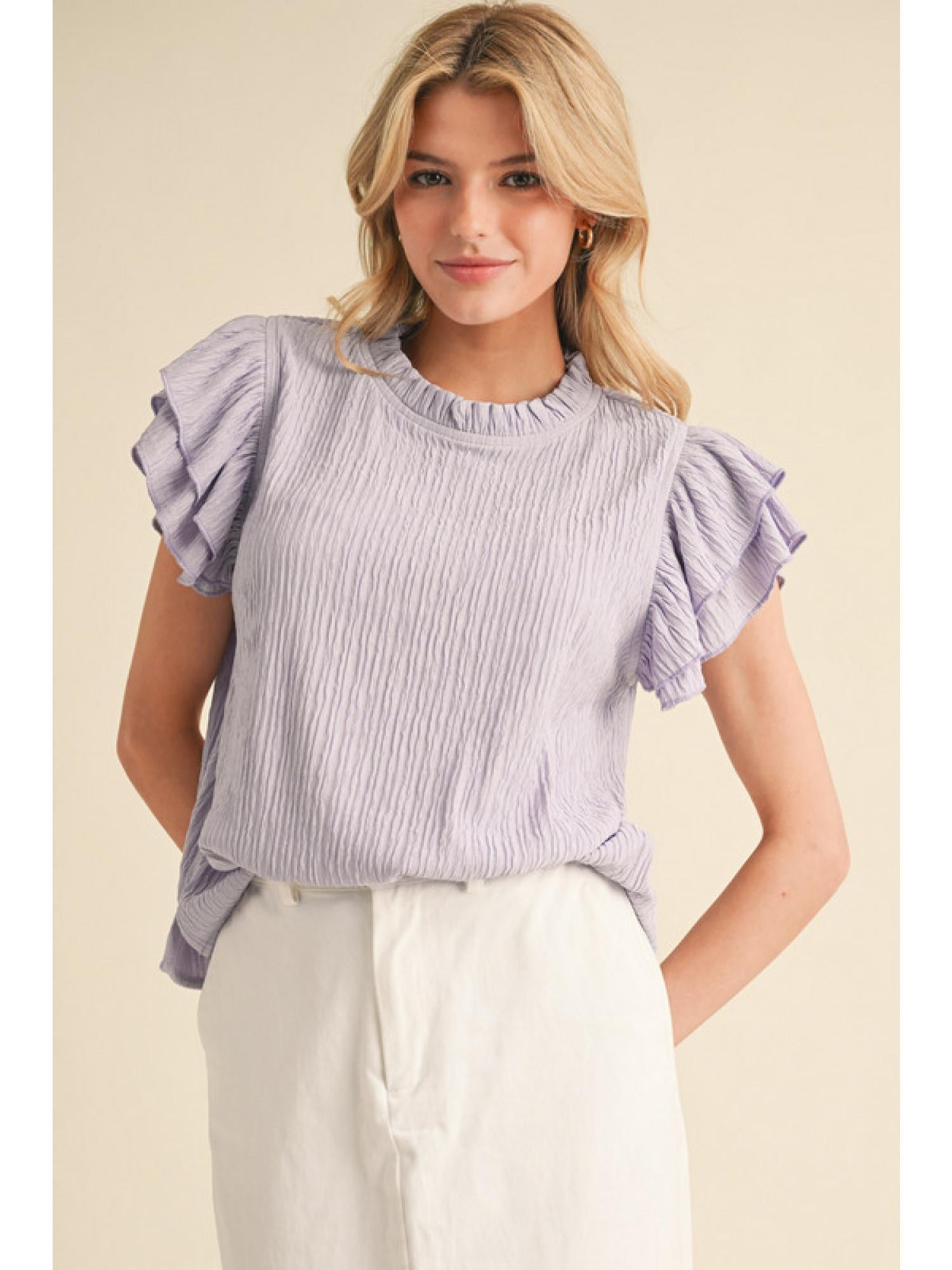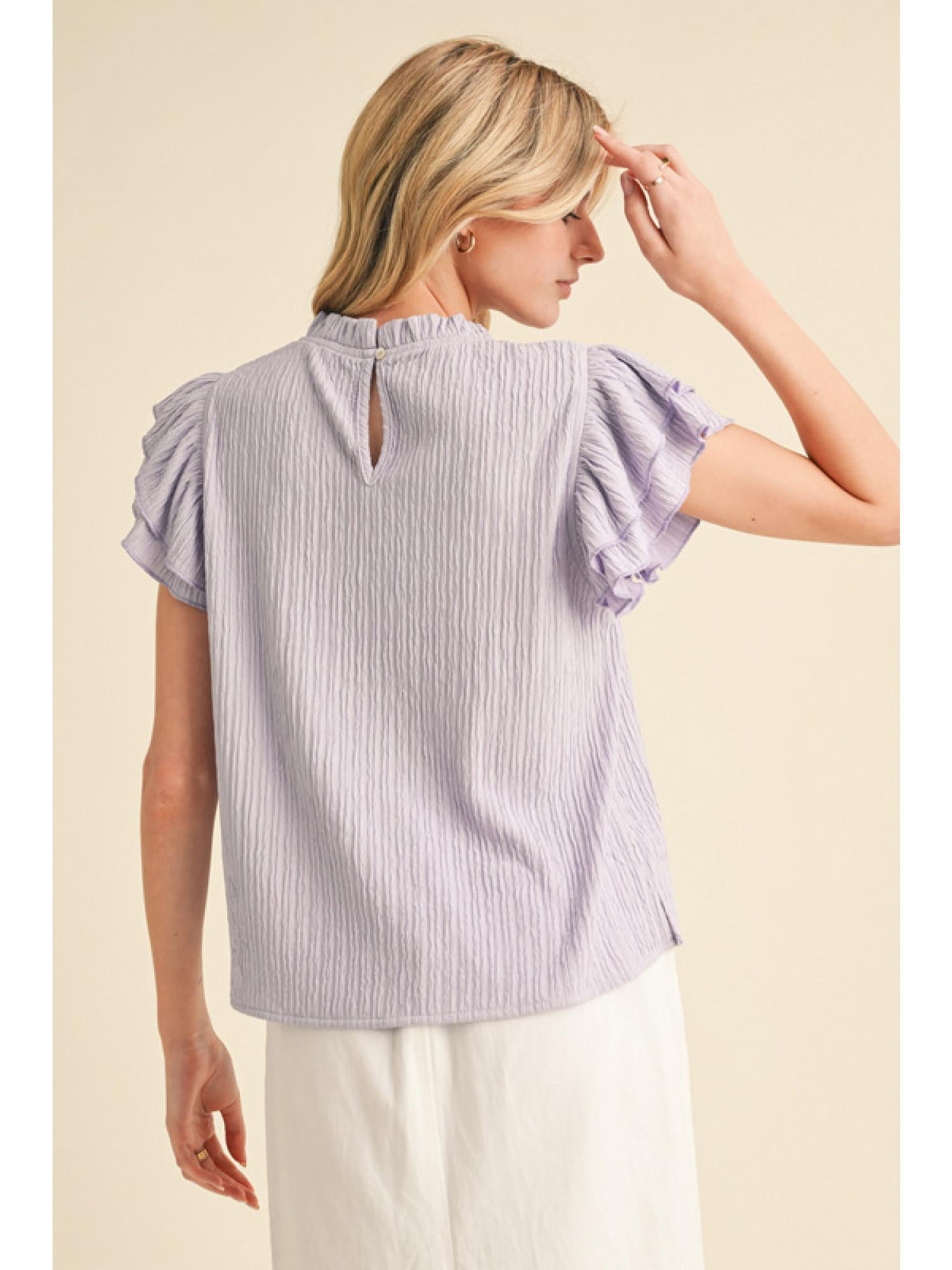 Textured Ruffly shoulder Top - Lavender