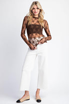 Elevate your fall layering game with the Autumn Lace Mock Neck Top. Designed in a rich brown hue, this long sleeve lace top features delicate embroidered detailing with a sheer finish that’s both feminine and versatile. The slight mock neckline and thumb hole accents add a modern twist, while the semi-fitted silhouette keeps it comfortable for all-day wear. Perfect on its own with a cami or layered under cardigans, blazers, and vests, this top transitions effortlessly from day to night.