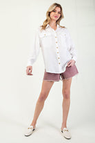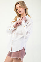 Meet the ultimate layering hero: the Effortless Layers Button-Down Shirt. Designed in a soft off-white hue, this relaxed-fit top combines everyday comfort with polished details. Featuring a collared neckline, dual chest pockets, buttoned cuffs, and a rounded hem with side slits, it’s versatile enough to wear solo or layered under sweaters, vests, or jackets. Whether styled casually with denim or dressed up for the office, this button-down is the seasonless staple your wardrobe needs.