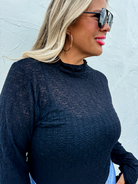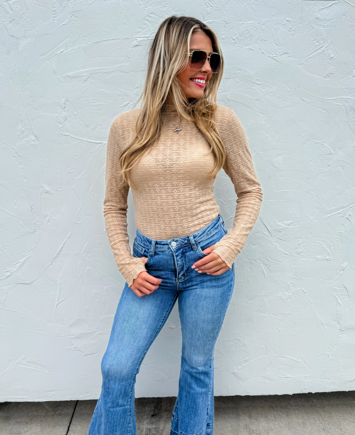 This sheer lacy top is simply perfect! Features THUMBHOLES! Was paired with a cami, bra, or bralette underneath (not sold with). Is slightly sheer. Same lace fabric as our Maggie tops.