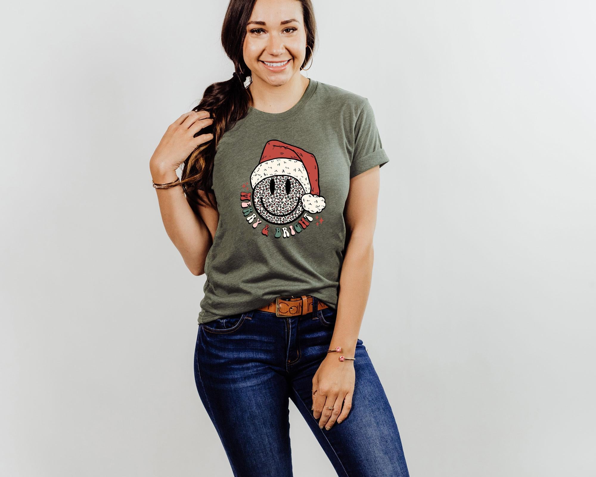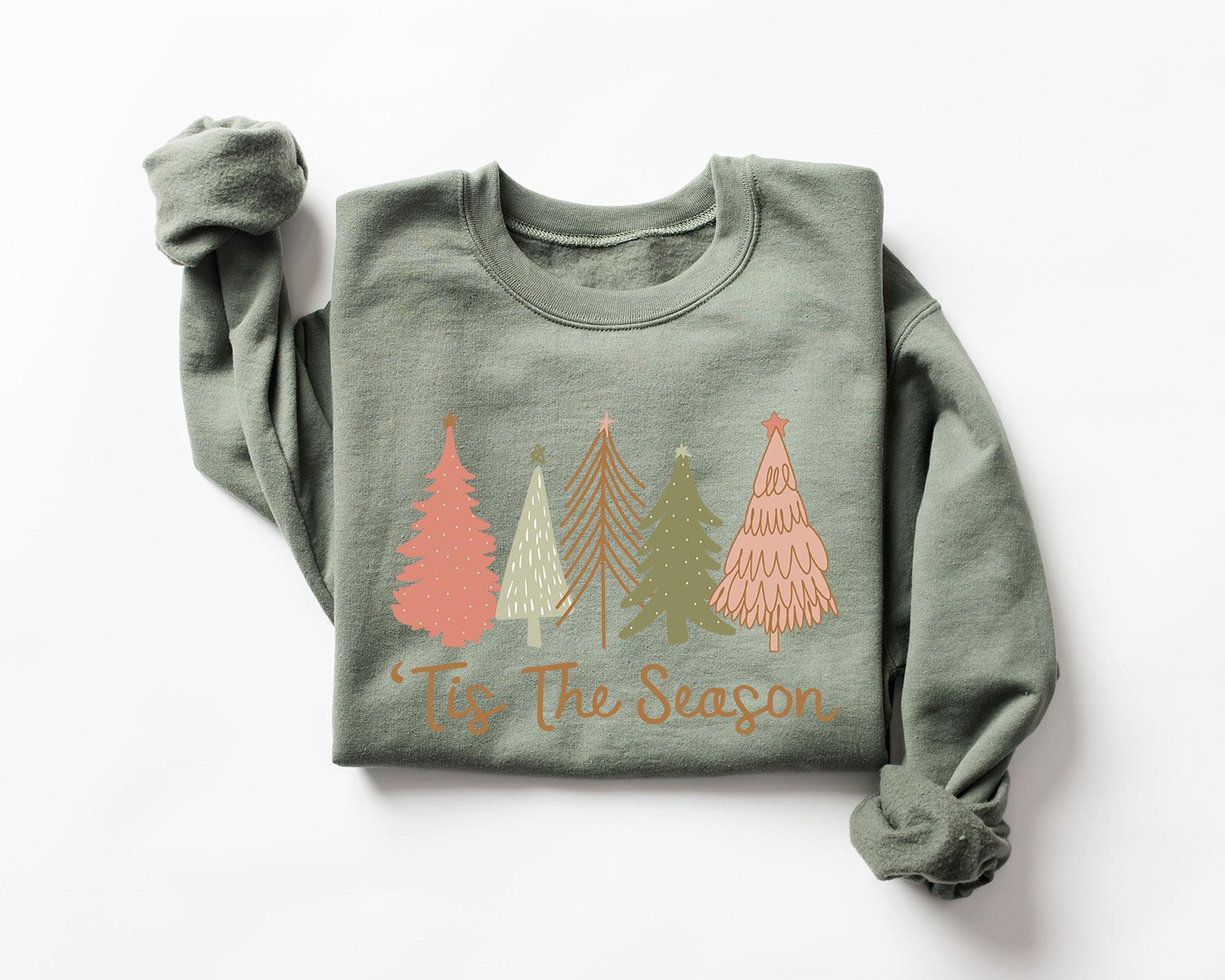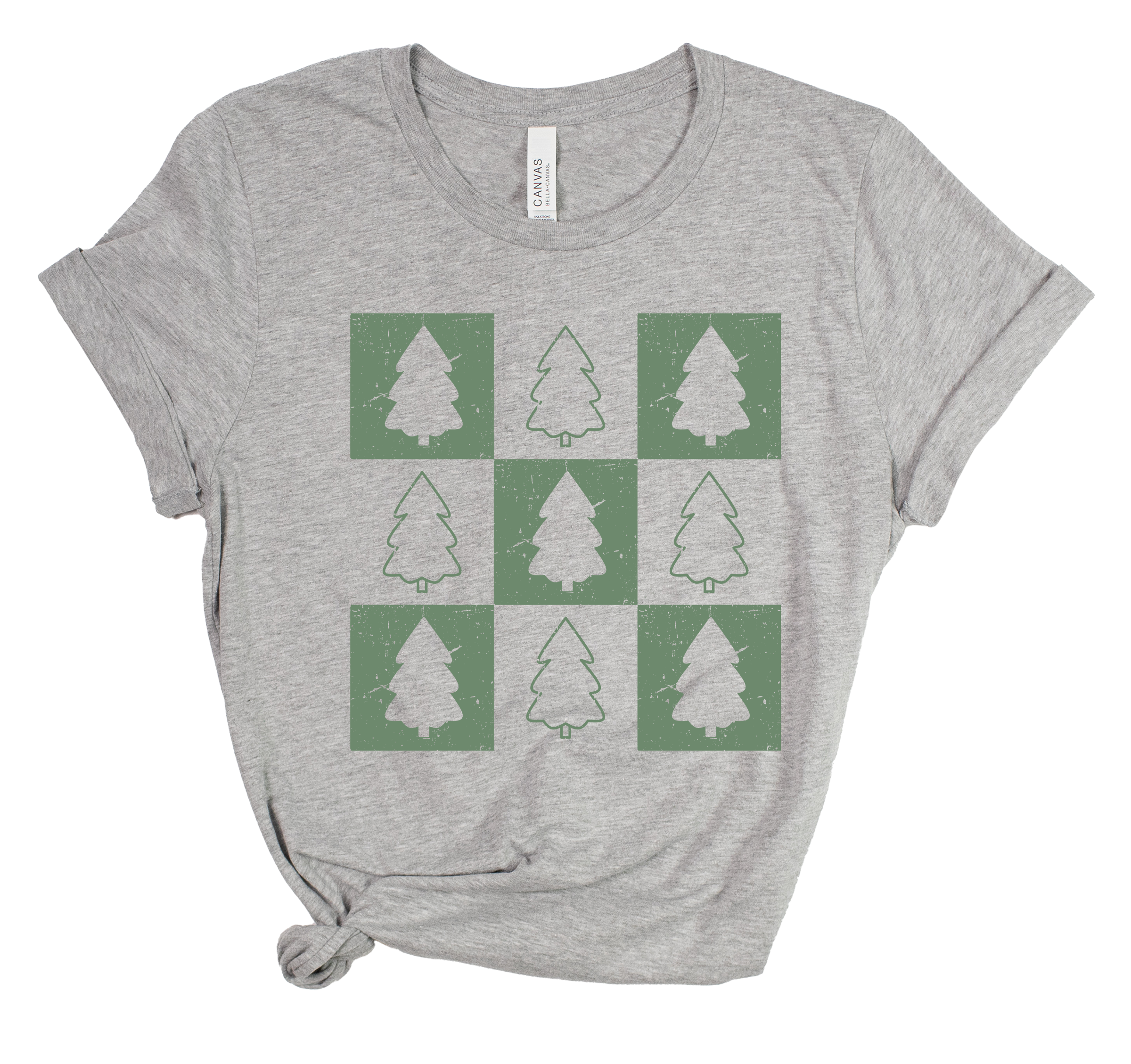 Pink Glitter Merry Christmas Trees Graphic Tee