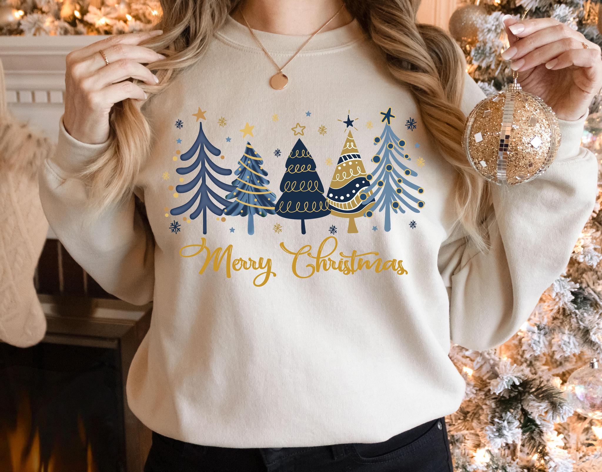 Merry Christmas Blue & Gold Graphic Sweatshirt