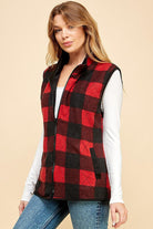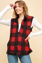 Black & Red Reversible Plaid Zip Up Pocket Vest