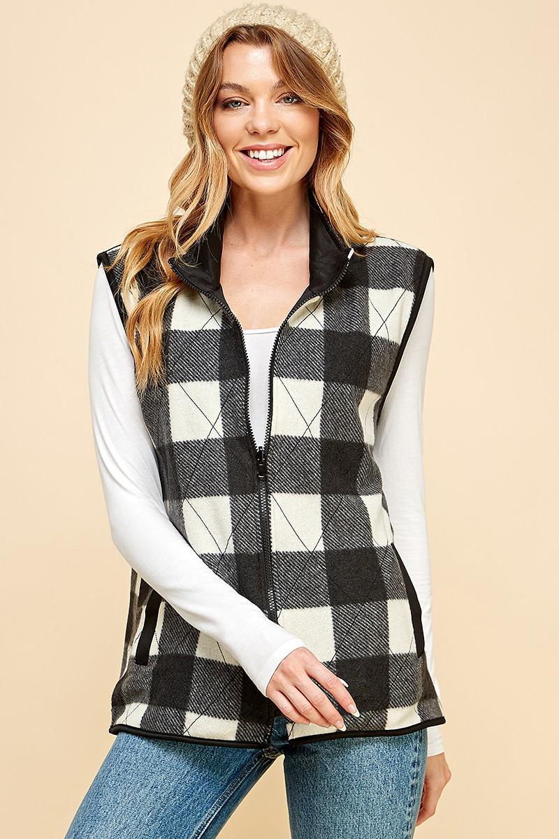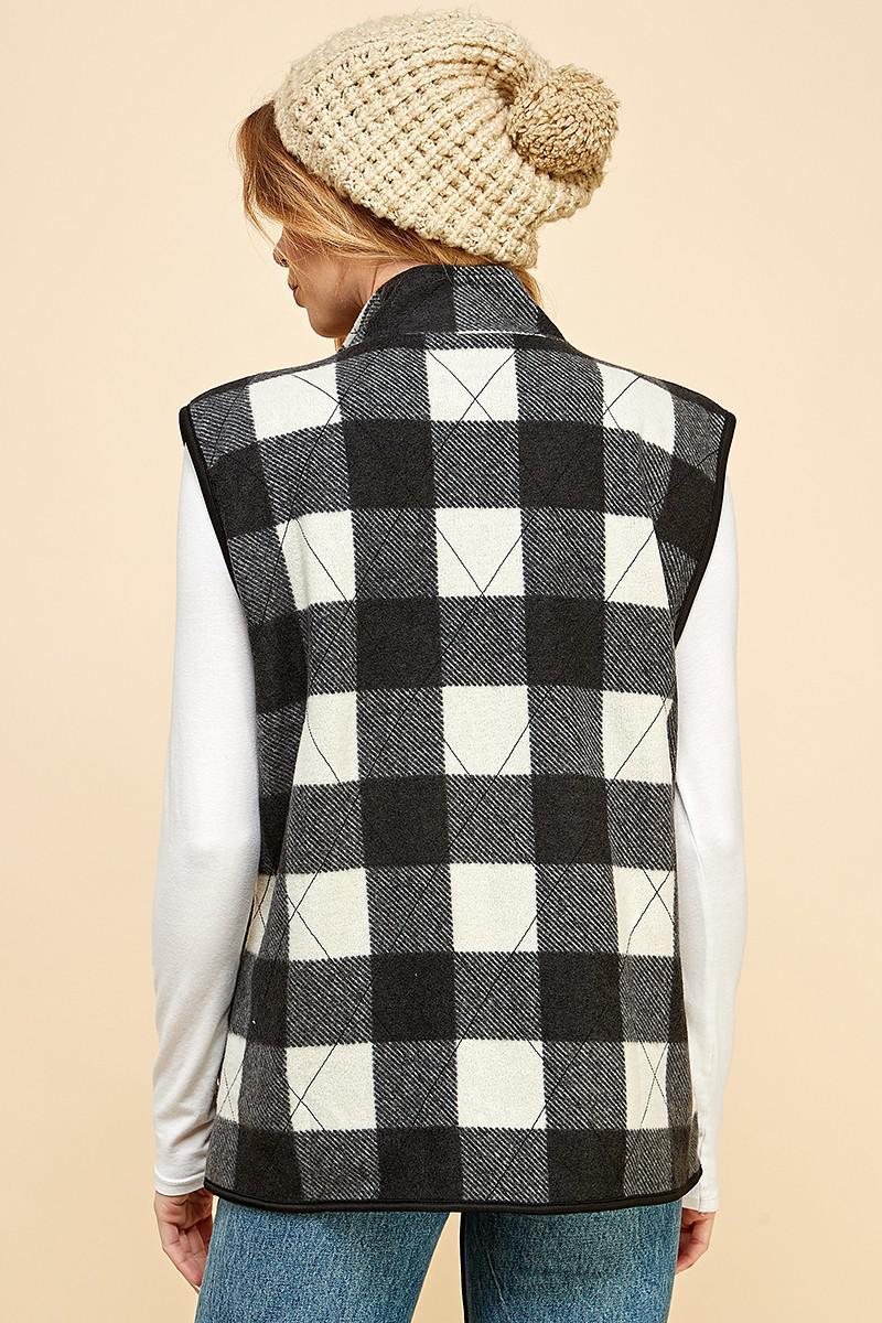 Black & White Reversible Plaid Zip Up Pocket Vest