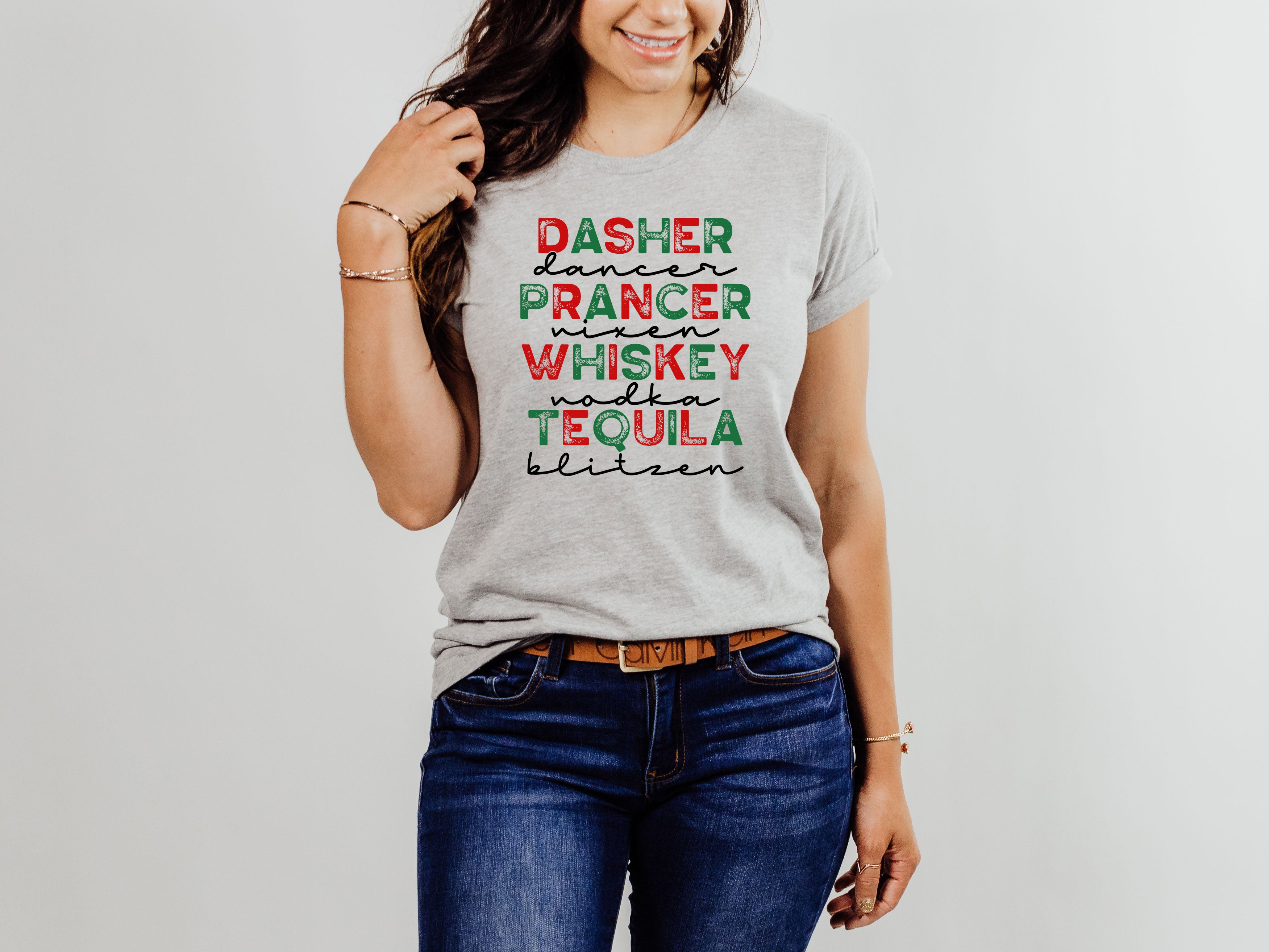 Dasher Dancer Whiskey Vodka Funny Christmas Graphic Tee