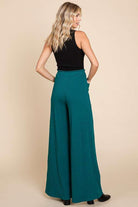 -Ruching -Frill Waist -Wide Pants -Solid -Pockets -Relaxed Fit -Rib -55% Cotton 35% Rayon 10% Spandex