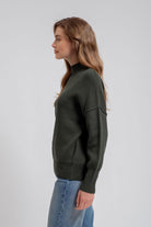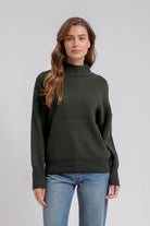 Hunter Green Mock Neck Ribbed Sweater