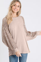 Khaki Sequin Bishop Sleeve Top