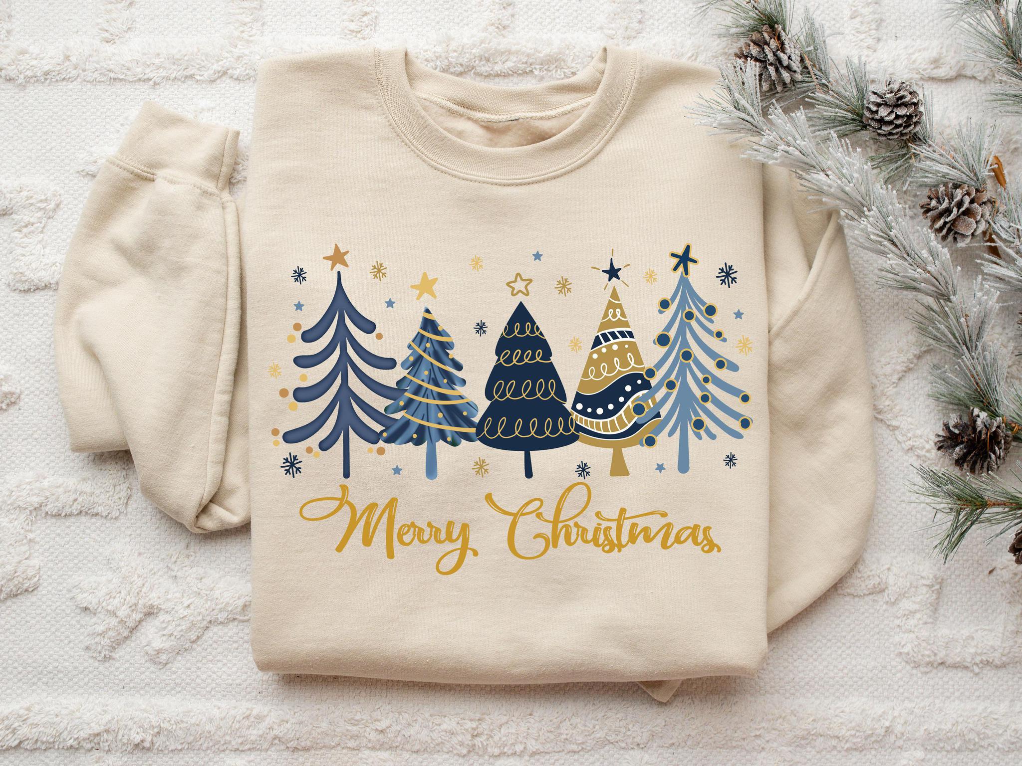 Merry Christmas Blue & Gold Graphic Sweatshirt