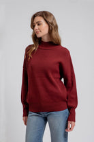 Oxblood Mock Neck Ribbed Sweater
