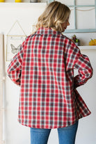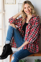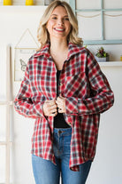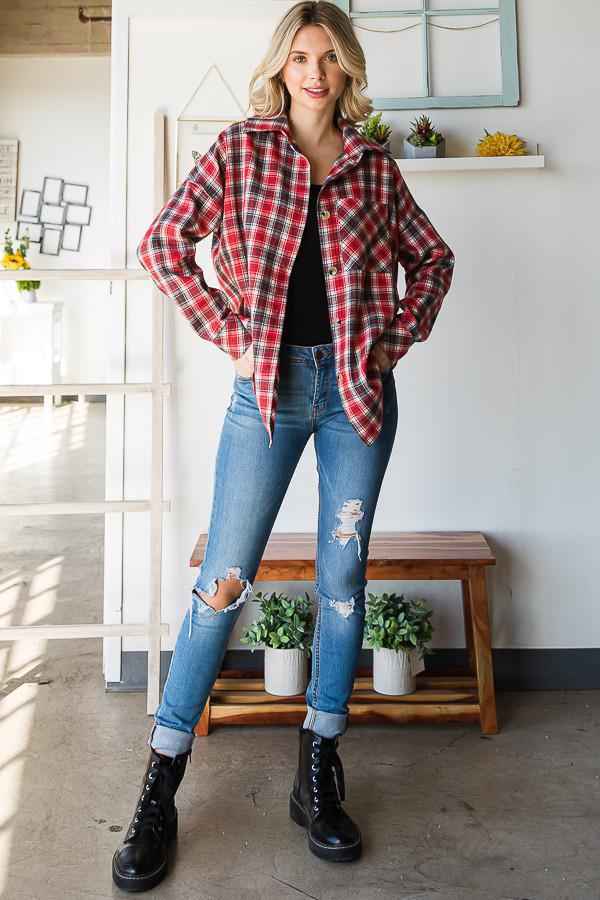 A PLAID SHACKET FEATURING A COLLAR NECKLINE, BUTTON DOWN , FRONT POCKET, RELAXED FIT, AND LONG SLEEVES. *MODEL IS WEARING SIZE SMALL