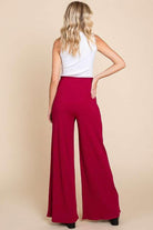 -Ruching -Frill Waist -Wide Pants -Solid -Pockets -Relaxed Fit -Rib -55% Cotton 35% Rayon 10% Spandex