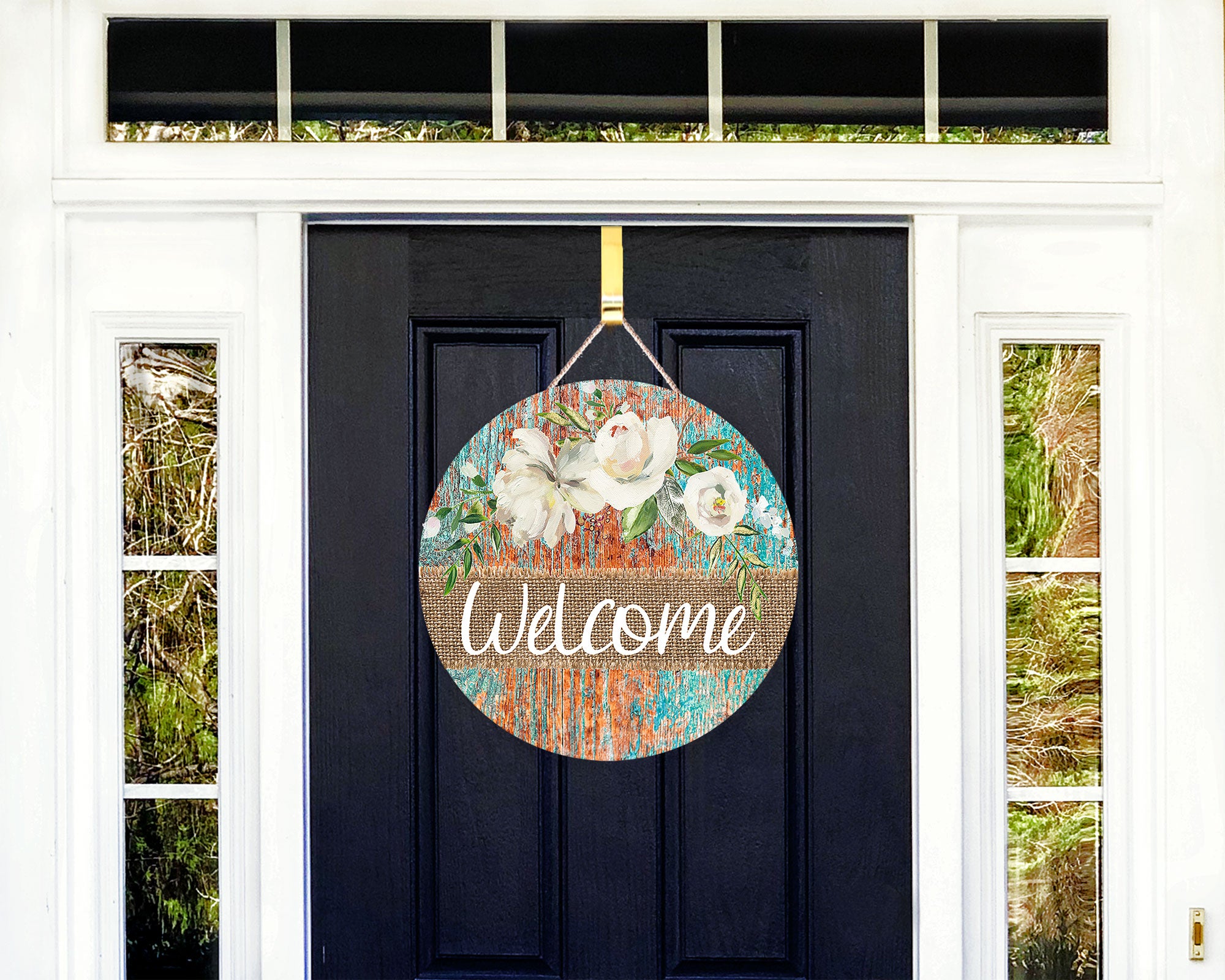 Coral & Teal Welcome 12 Inch Round Door Hanger+