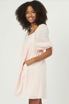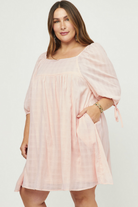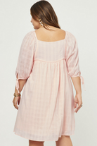 Our Textured Solid Checkered Tie Sleeve Square Neck Dress Features: