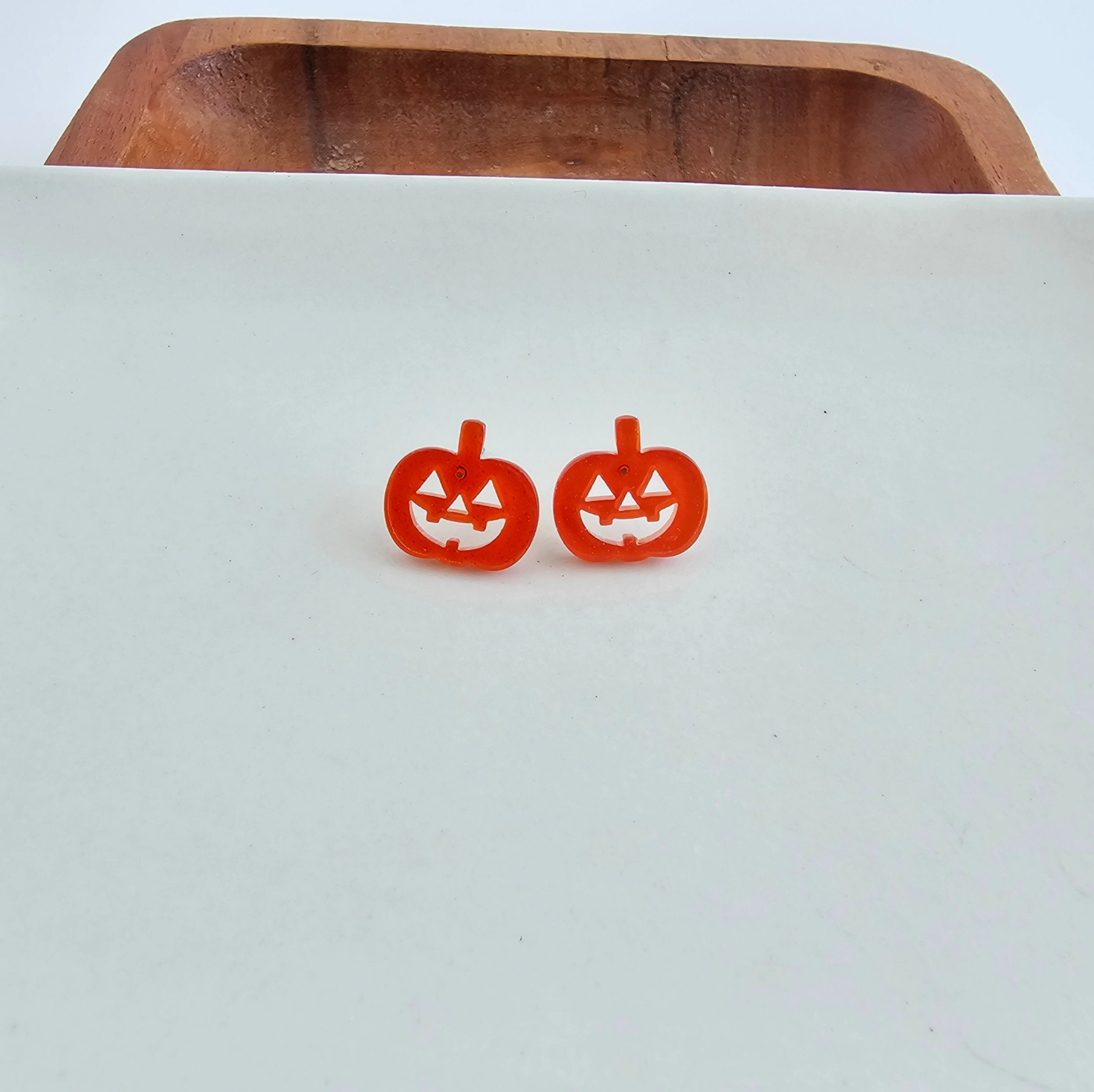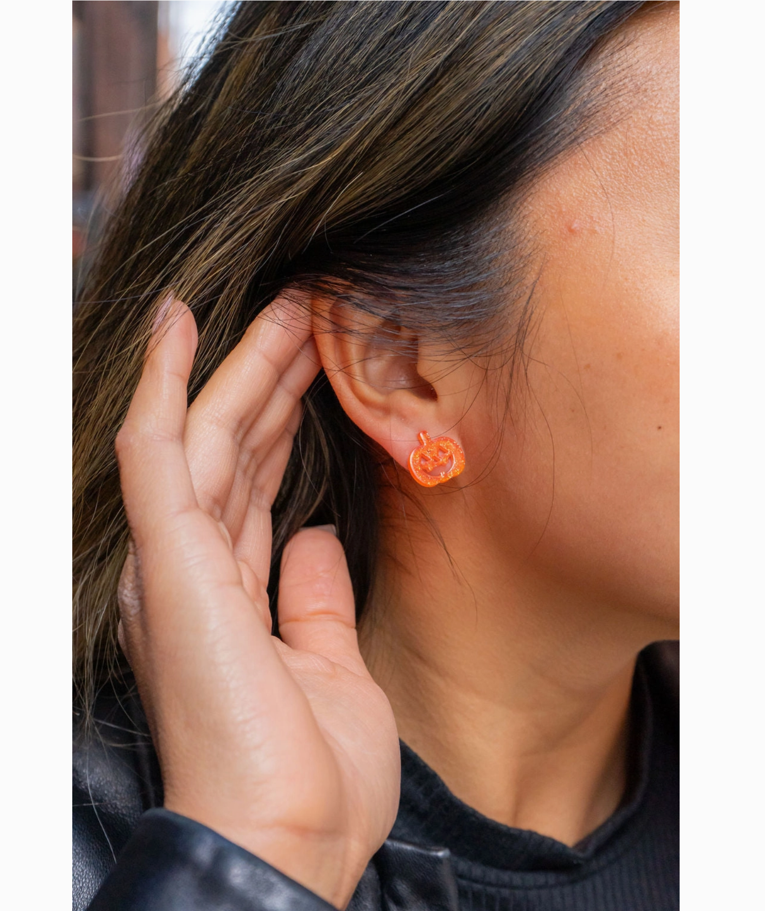 Jack O' Lantern Pumpkin Studs - Orange Glitter