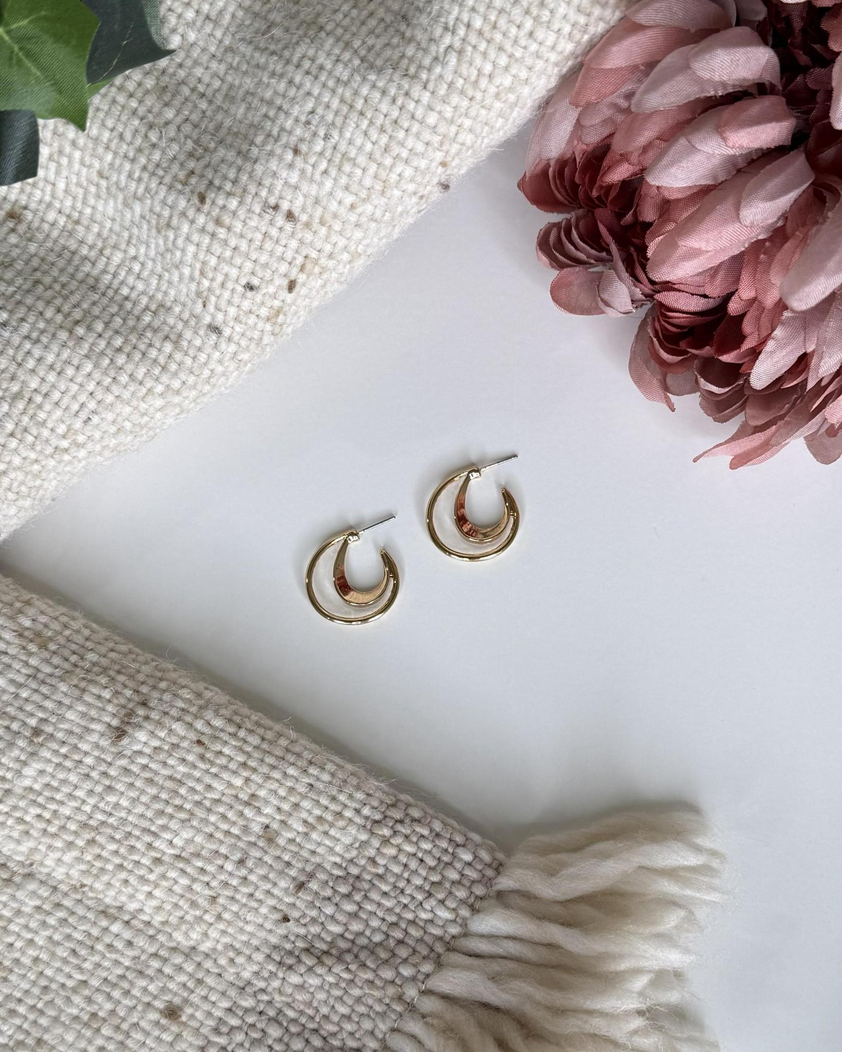 Elegant with a modern twist, the Brielle Open Swirl Hoop Earrings feature a graceful curved design that creates the look of two hoops flowing together in one sculpted piece. The open swirl shape adds movement and shine while keeping the style lightweight and easy to wear.