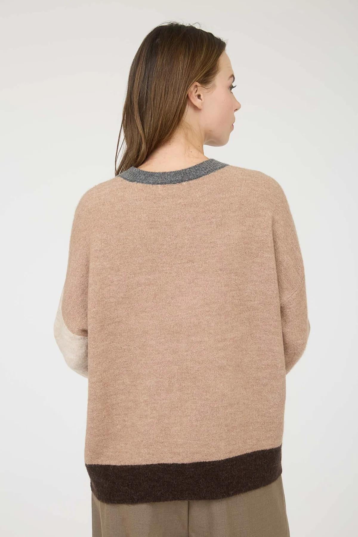 Cozy, modern, and just the right amount of bold — this Colorblock Front Seam Sweater is a must-have for your fall lineup. Featuring a unique khaki multi color palette with contrasting panels, this pullover brings easy sophistication to chilly-day outfits. The crew neckline, drop shoulders, and relaxed silhouette make it the perfect blend of comfort and style. A versatile knit you’ll wear on repeat all season, and yes — it’s comfy enough to carry you into winter too.