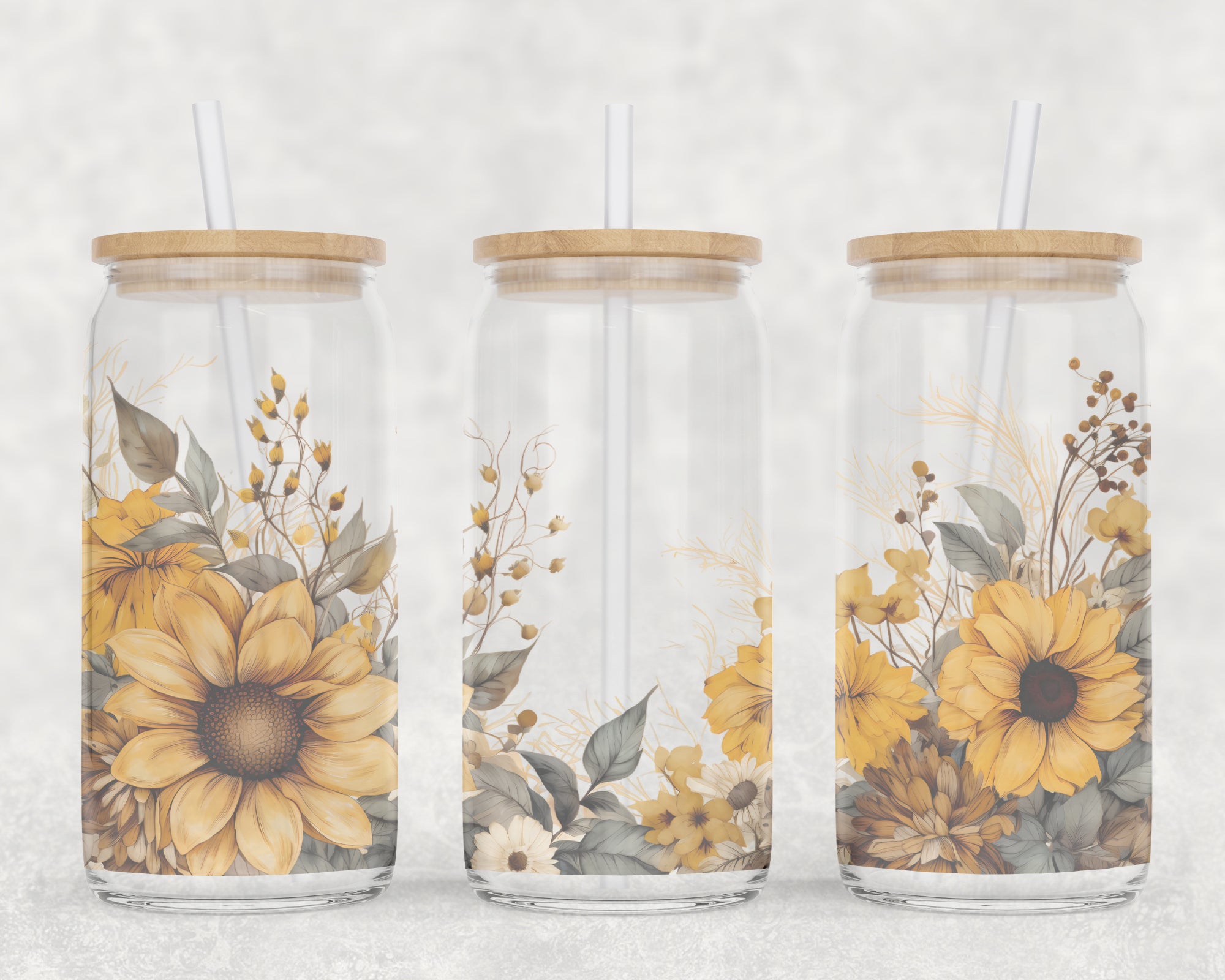 This Libbey glass can is 16 ounces, and comes with a bamboo lid and plastic straw. It is available is clear or frosted glass.