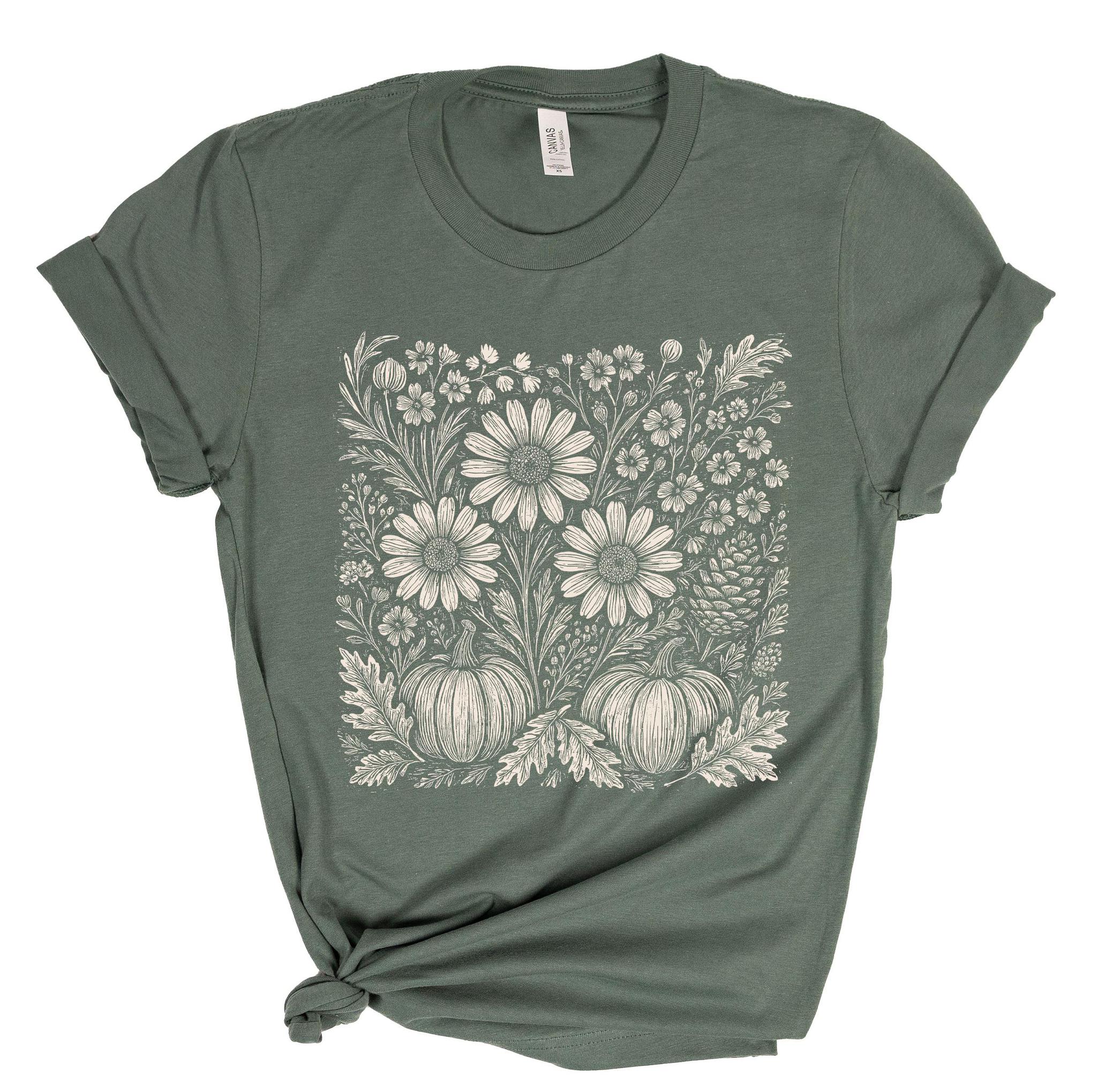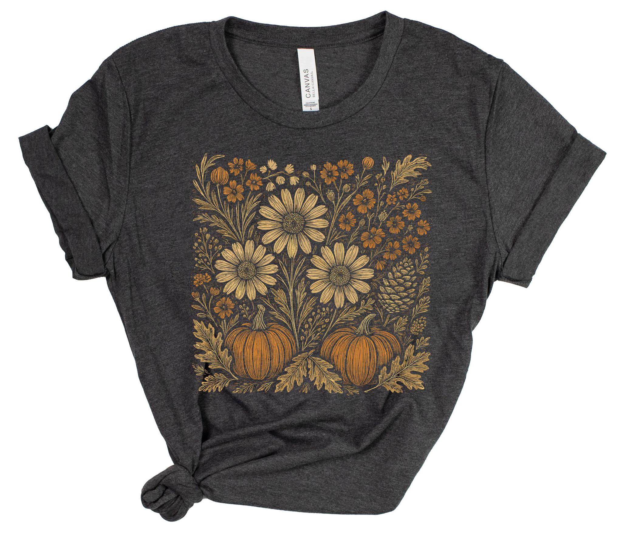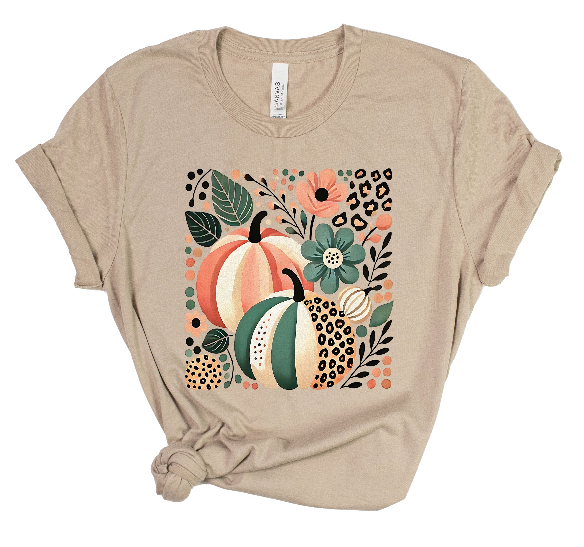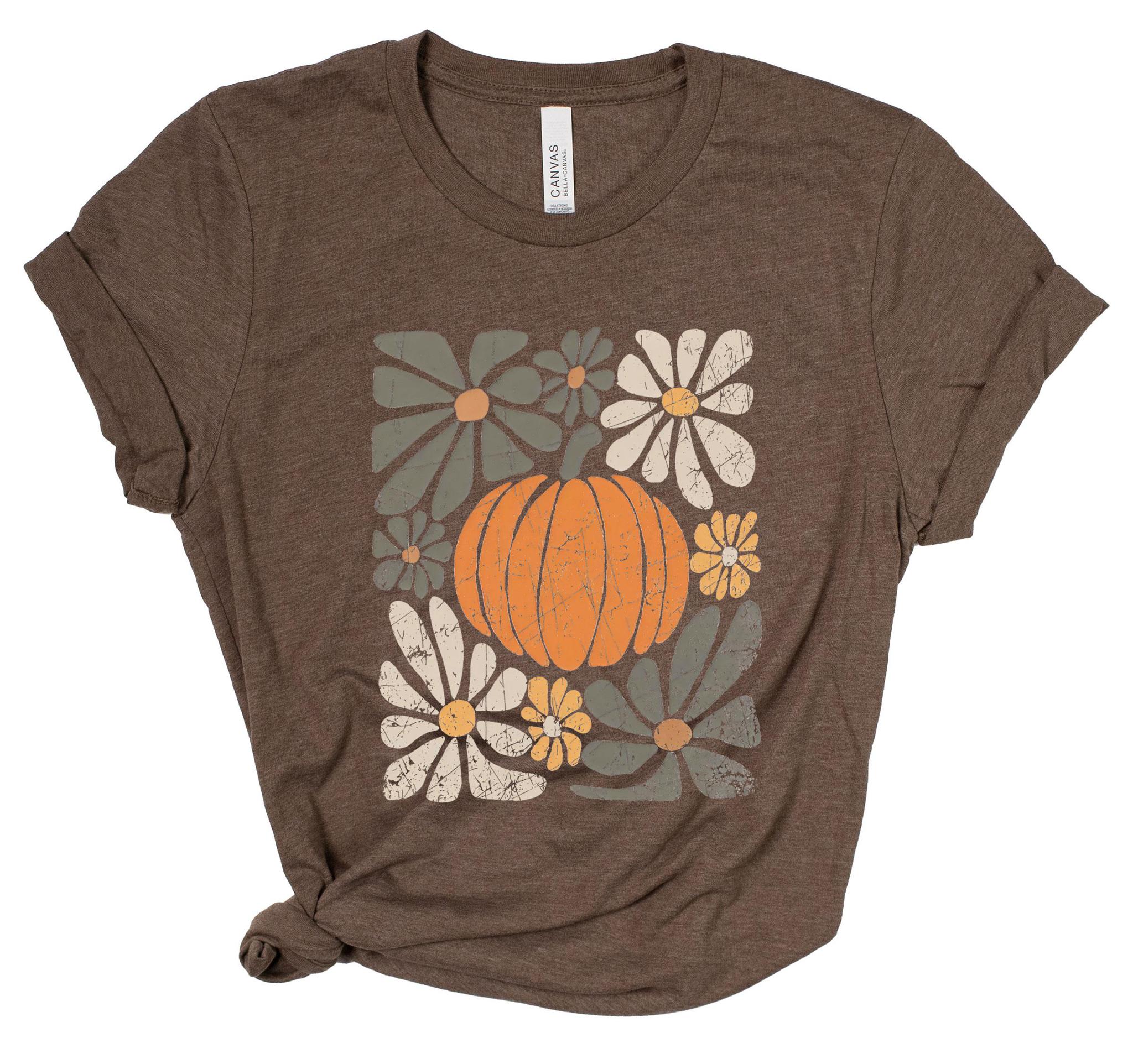 Retro Vintage Pumpkin Leaves Graphic Tee