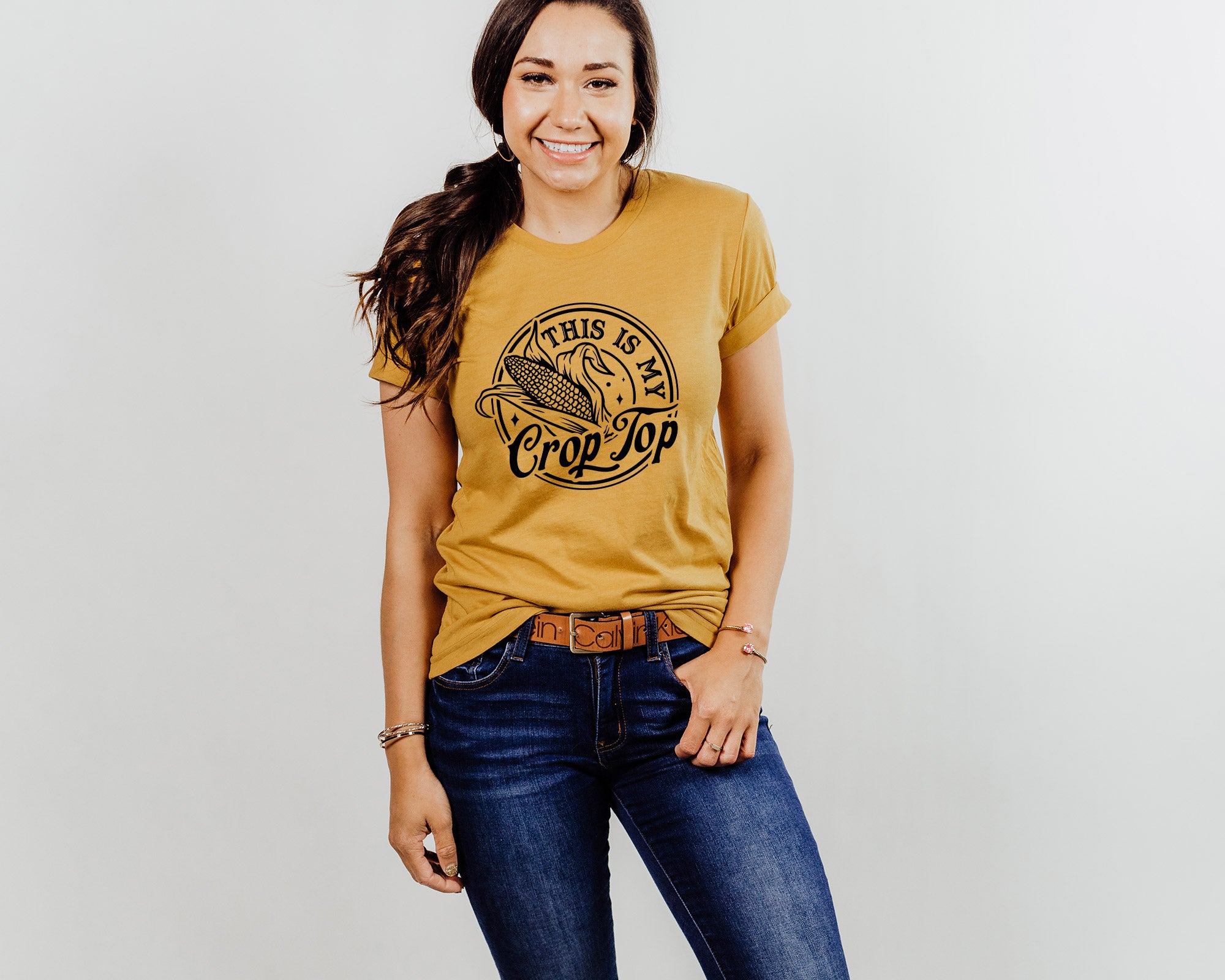 We print on premium Bella + Canvas and Gildan Softstyle tees—both known for their soft cotton/poly blend and unisex fit that flatters every body type. Whether you’re pairing it with your go-to jeans or layering it under a shacket, this tee is an effortless staple.