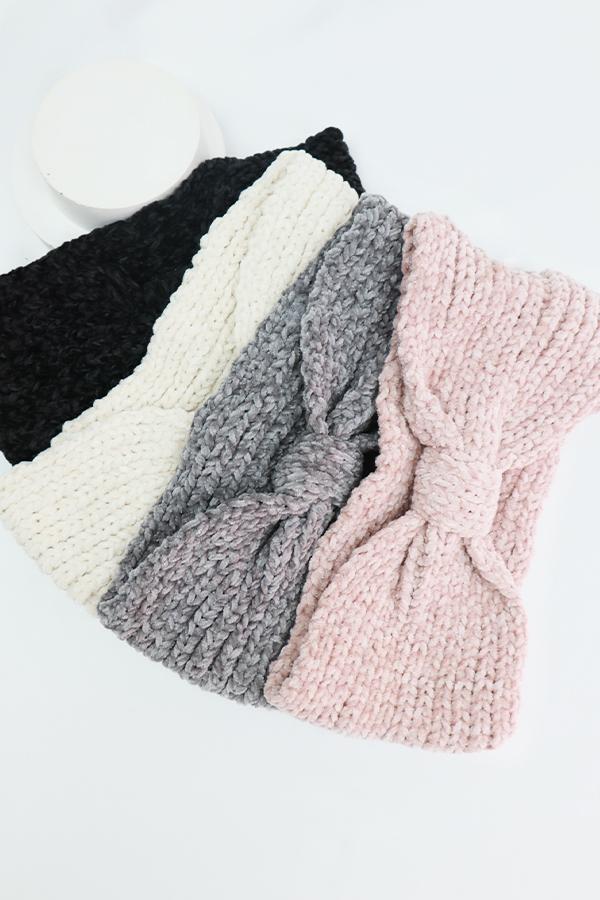 Soft Color Chenille Bow Knit Headwrap