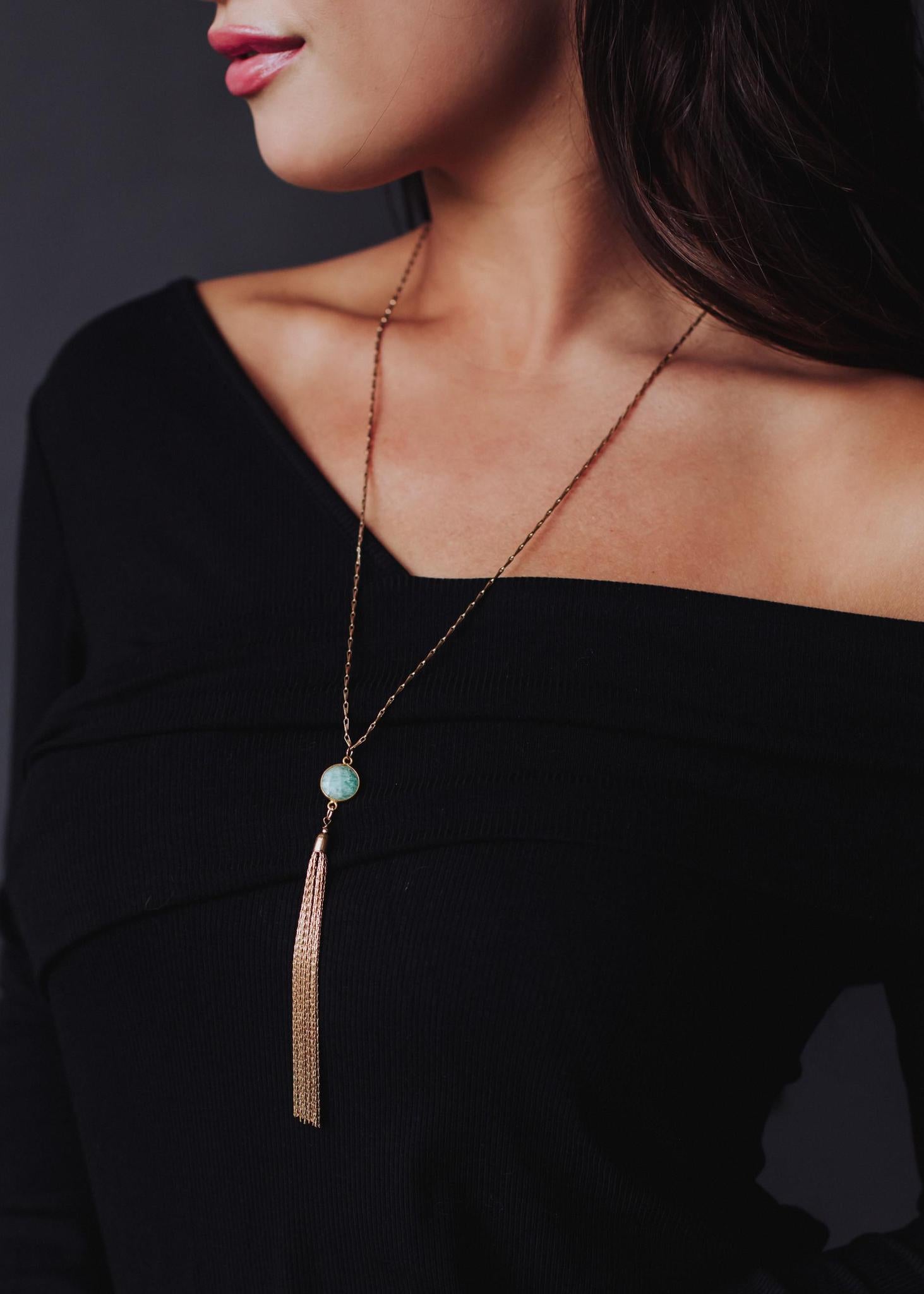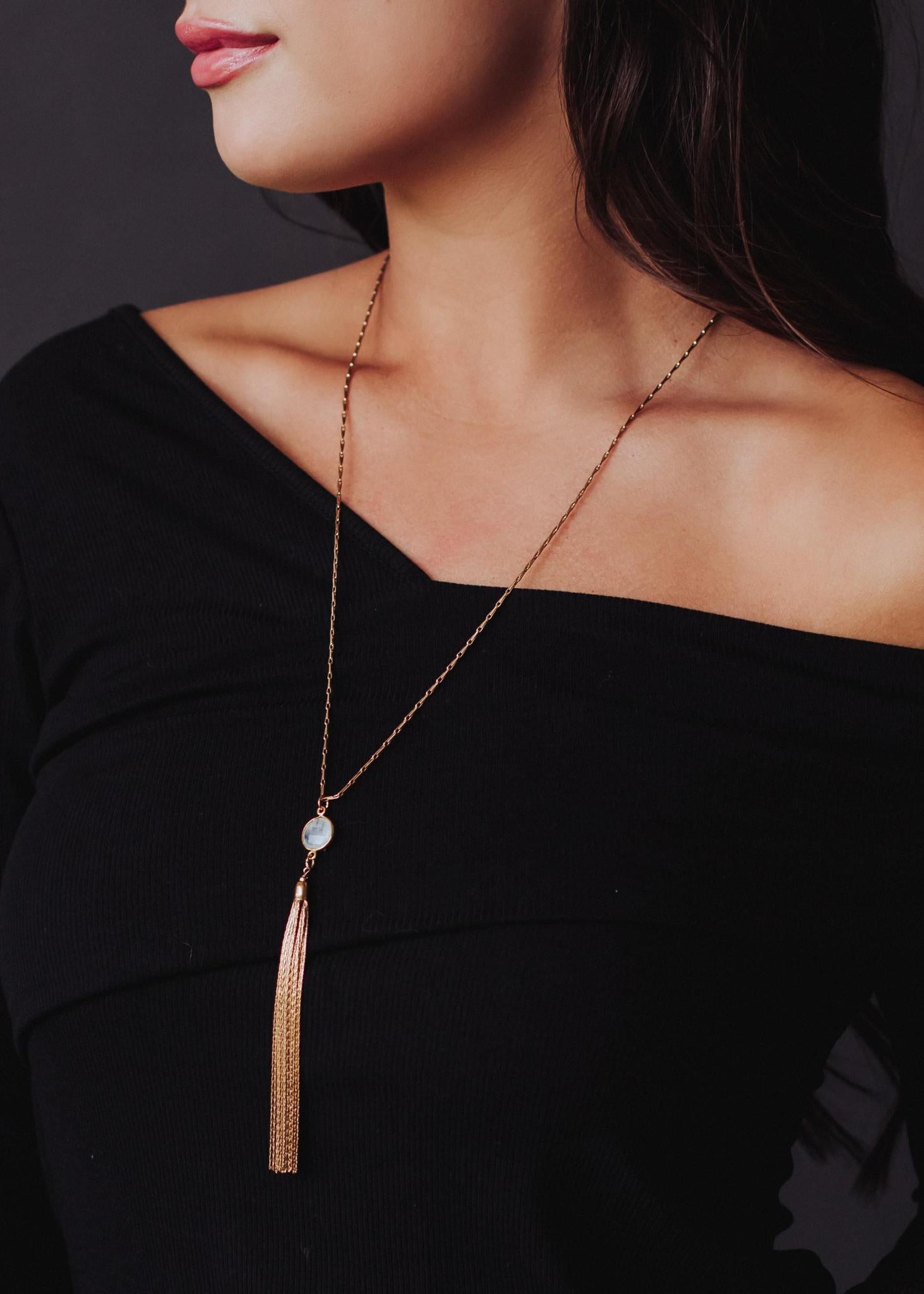 Gray Tassle Pendant Necklace