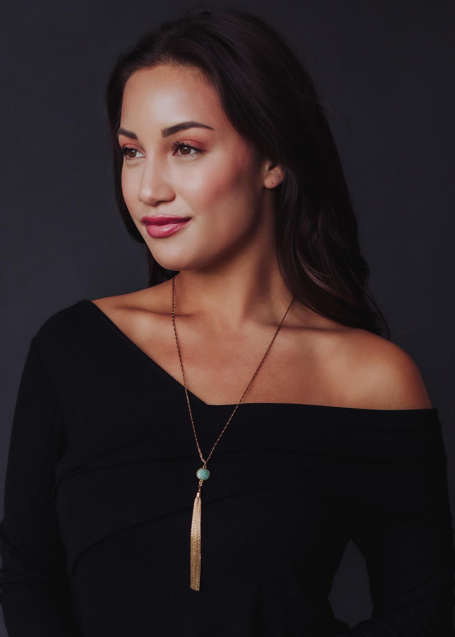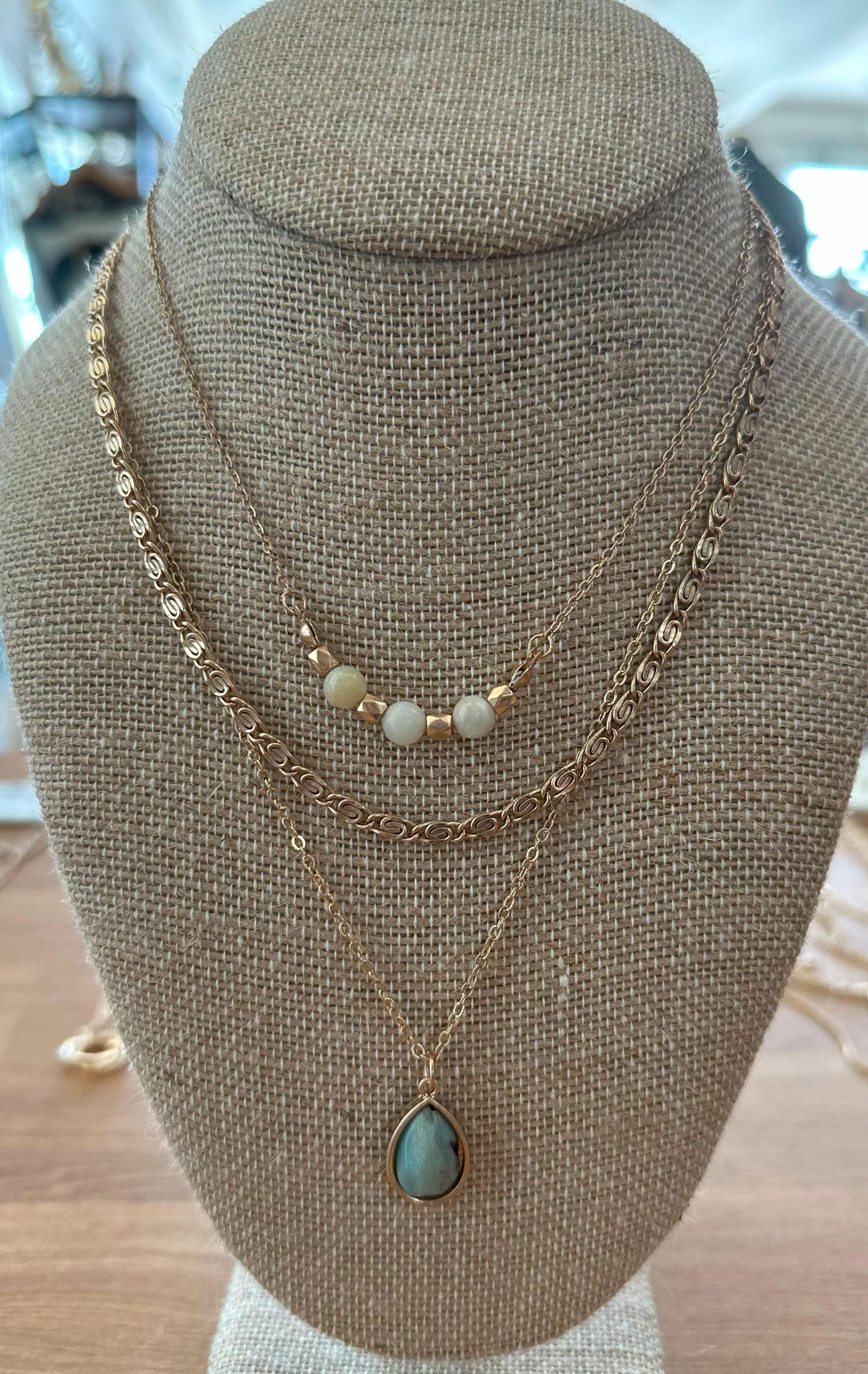 Gold Layered Necklace Set – Semi-Precious Teal Stone Teardrop