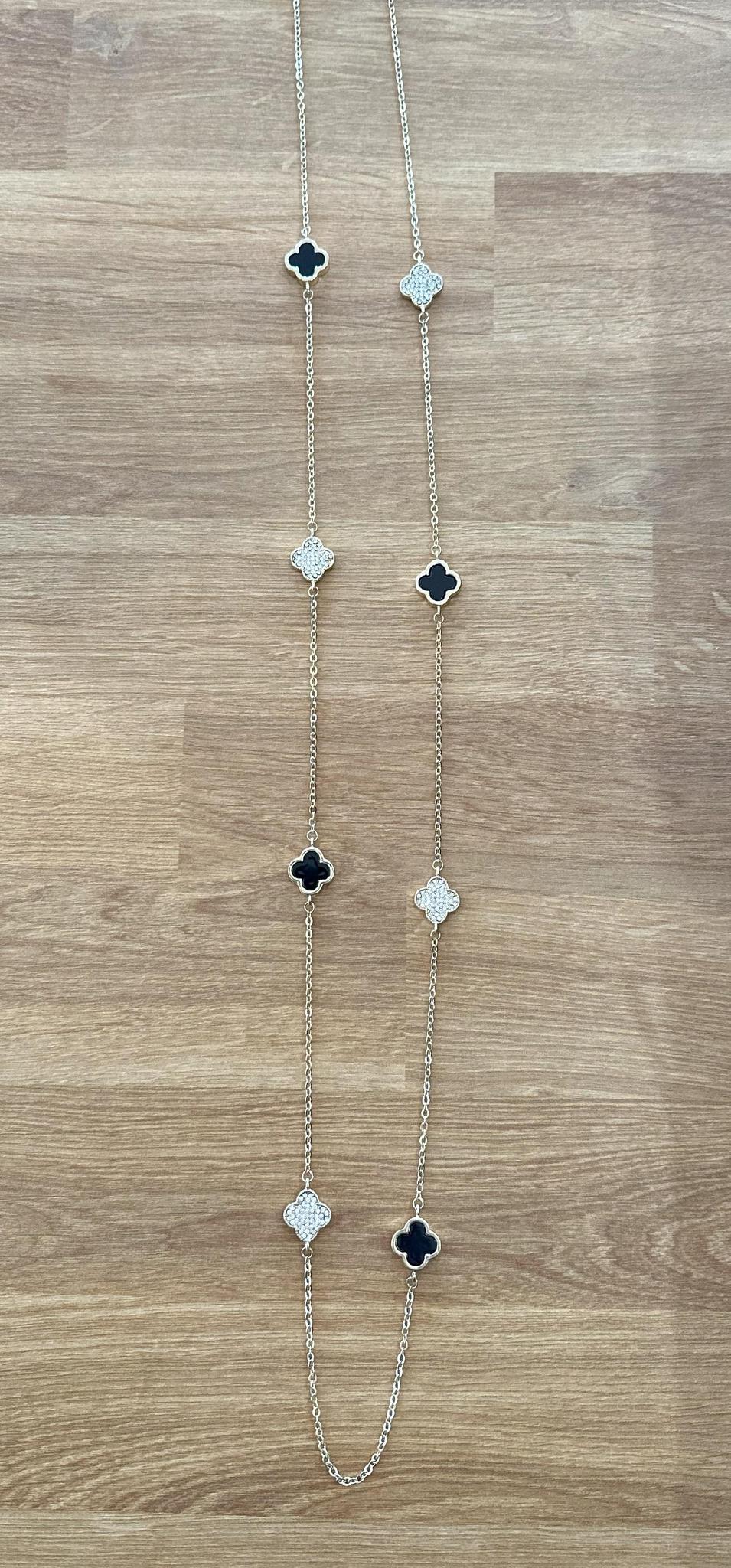 Long Onyx and Diamond Clover Necklace