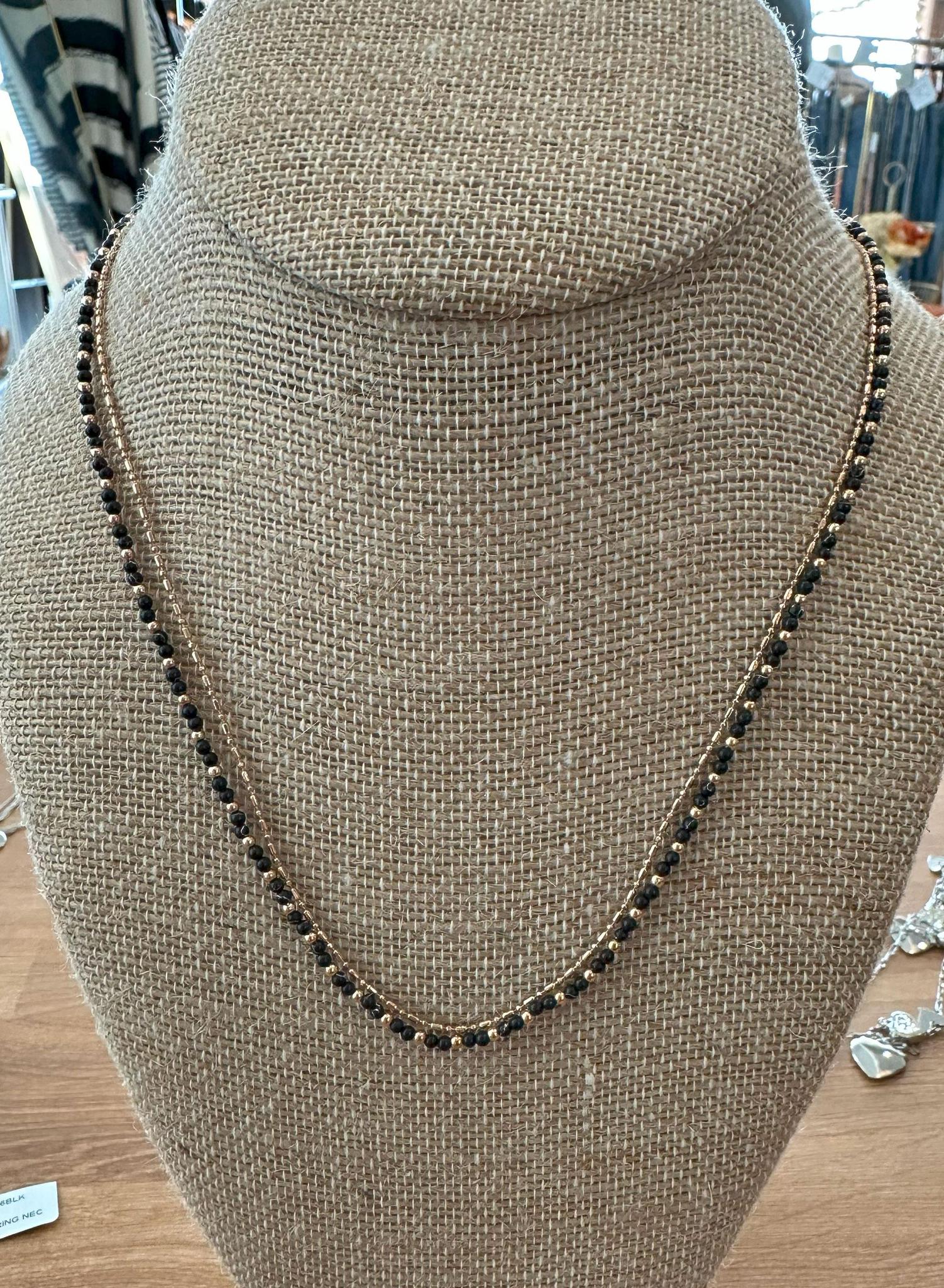 Gold & Black Beaded Chain Necklace