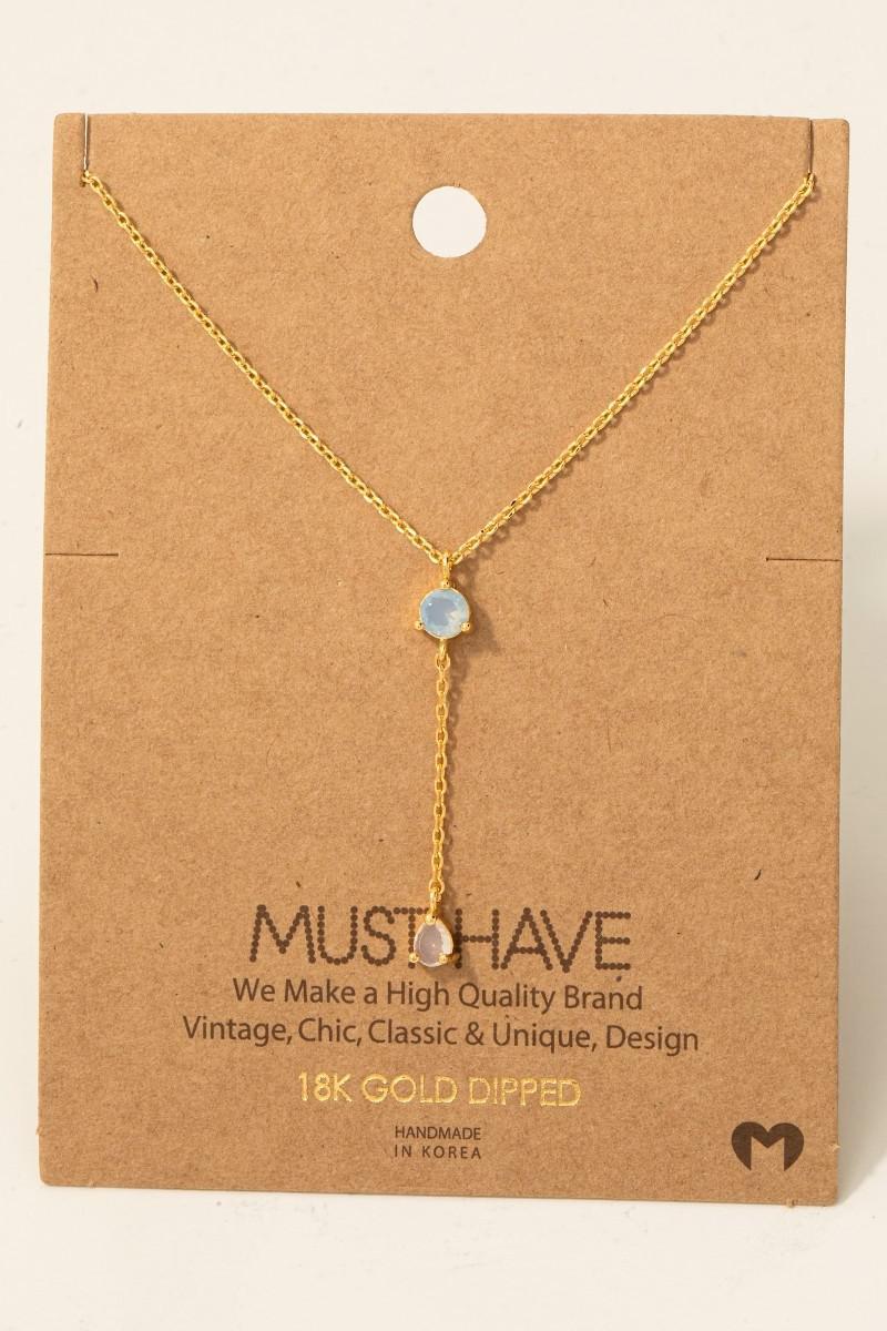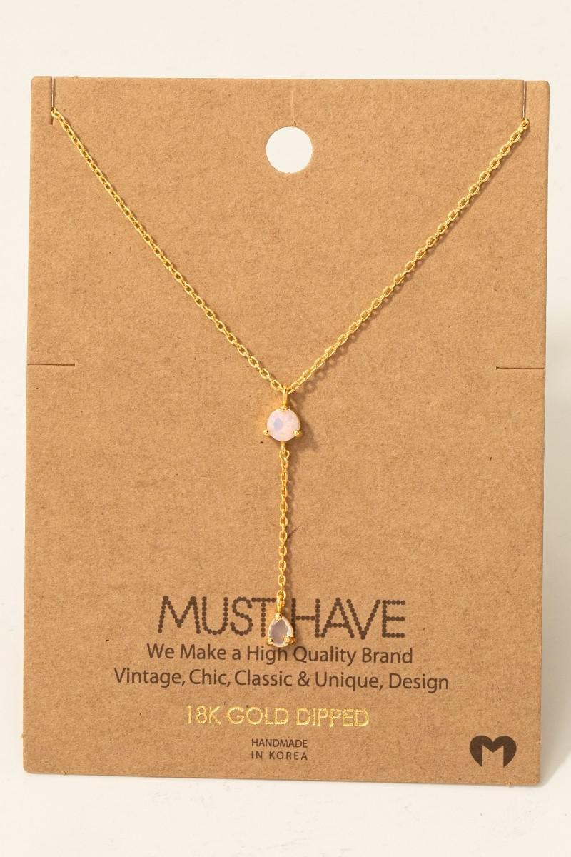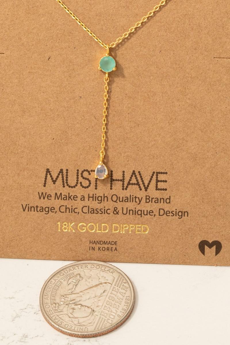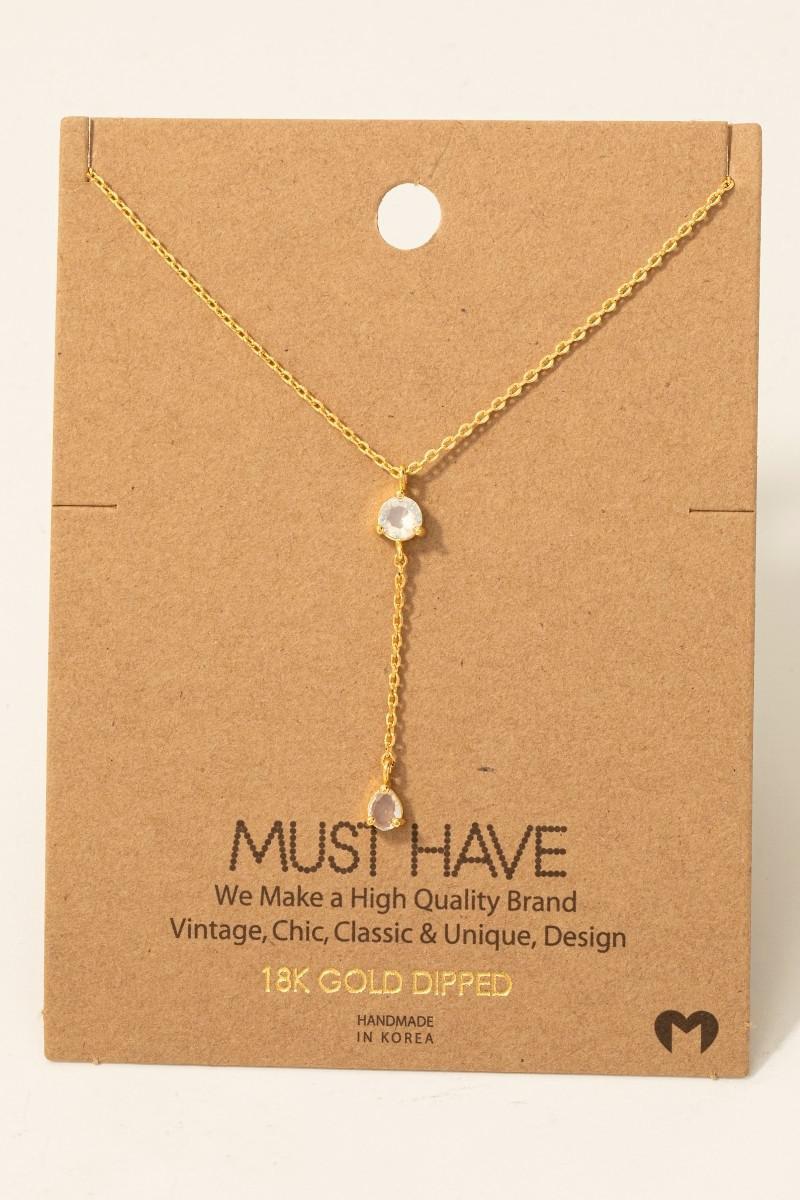 Gold Dipped Cubic Zirconia Gems Y Chain Necklace