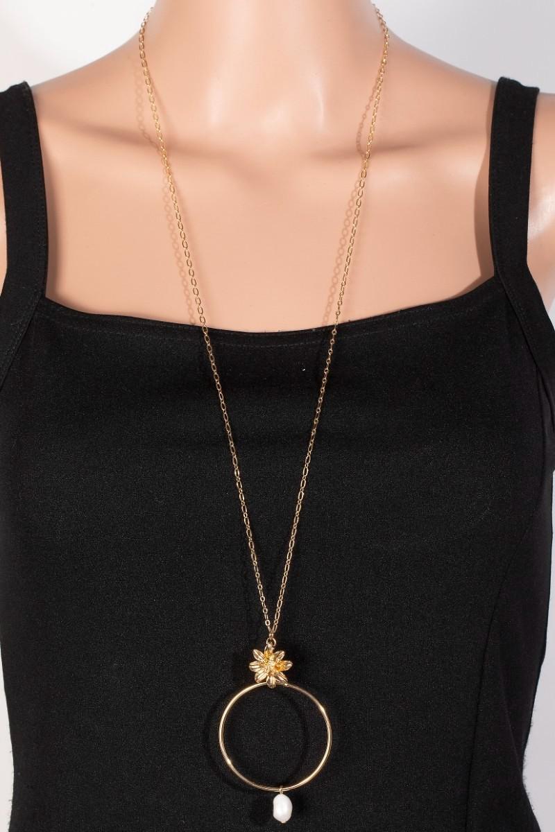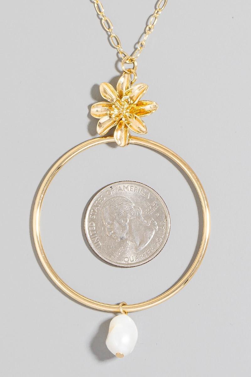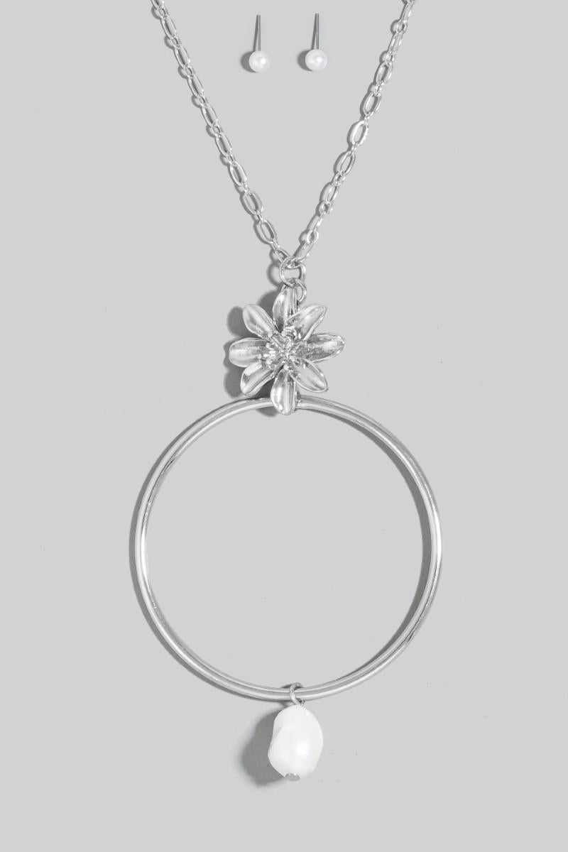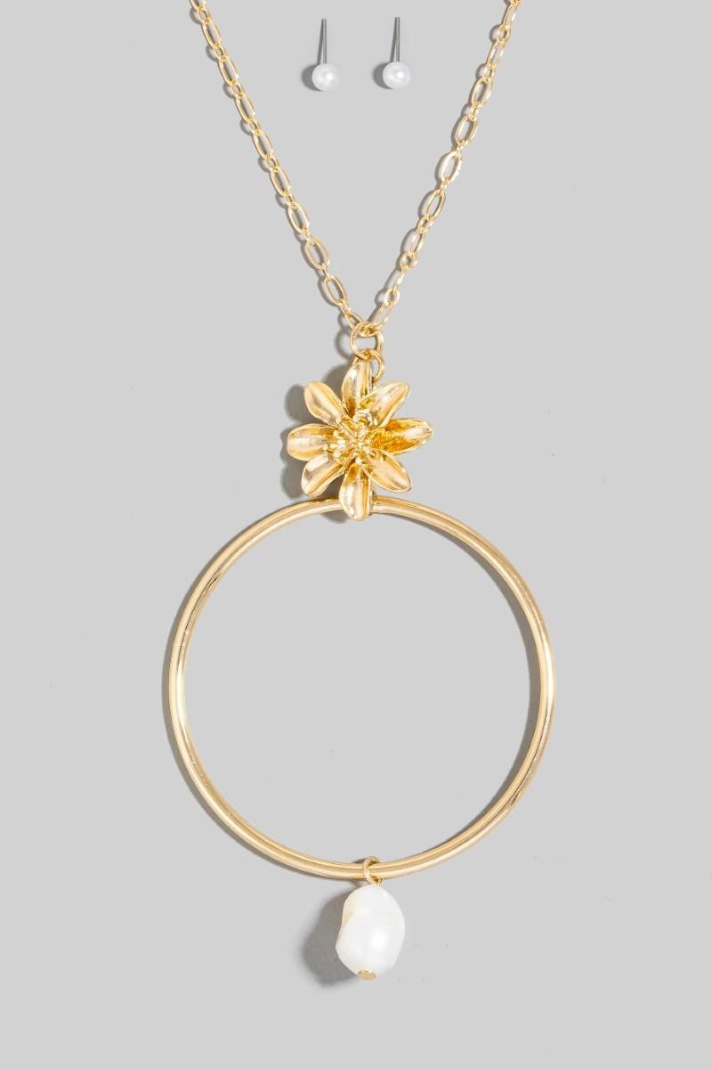 Flower Pearl And Large Hoop Pendant Layered Necklace Set