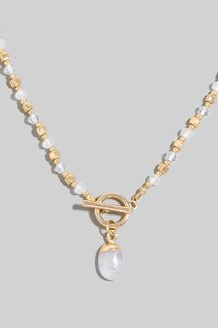 Oval Stone Pendant Beaded Toggle Chain Necklace