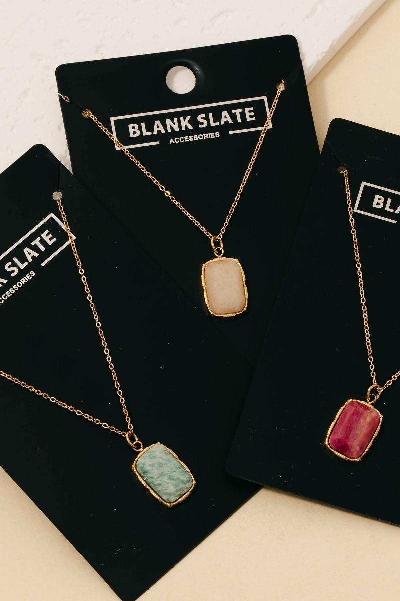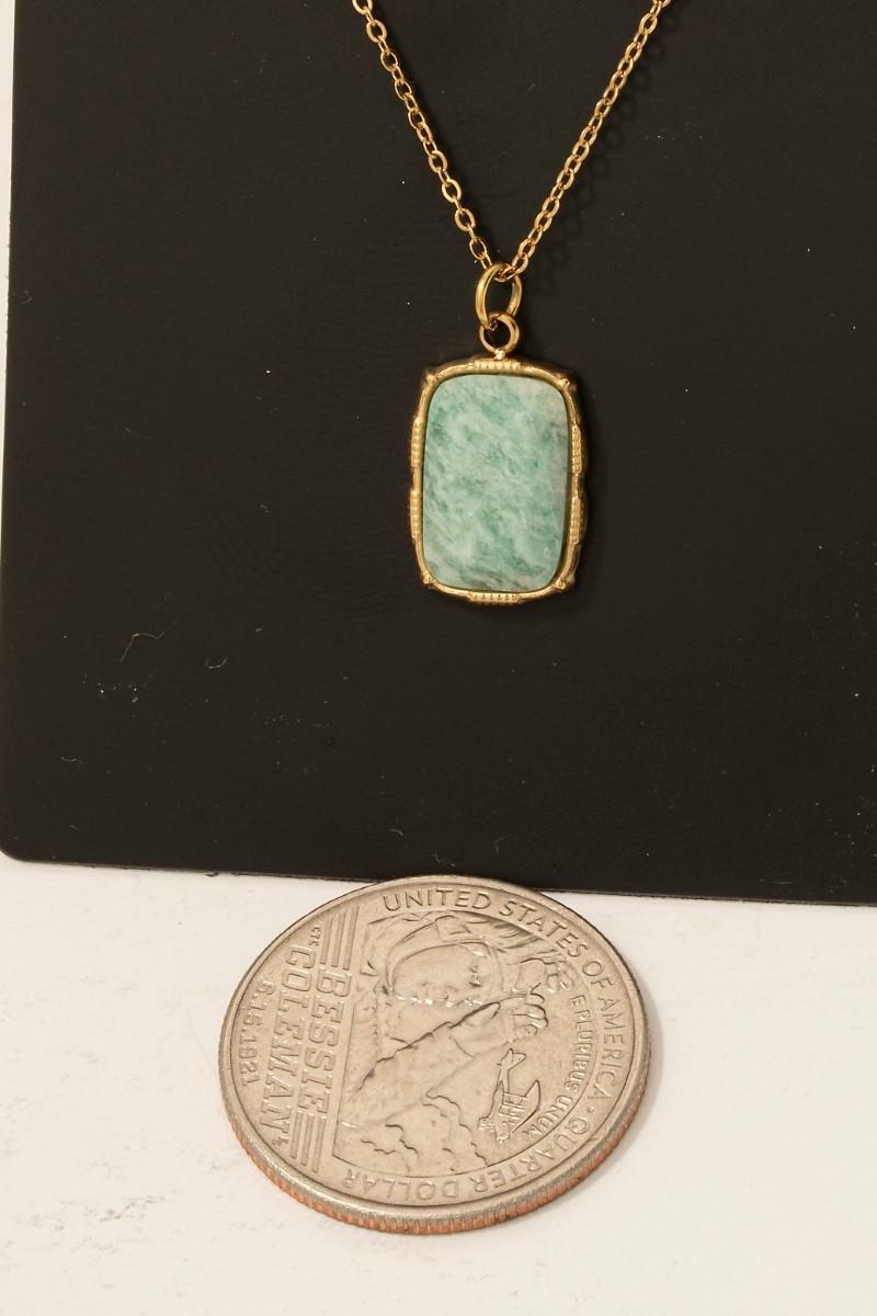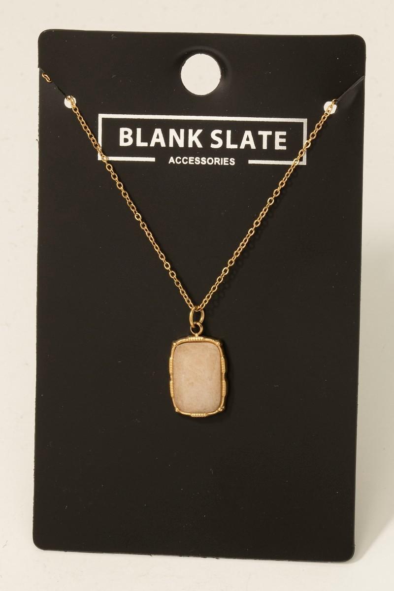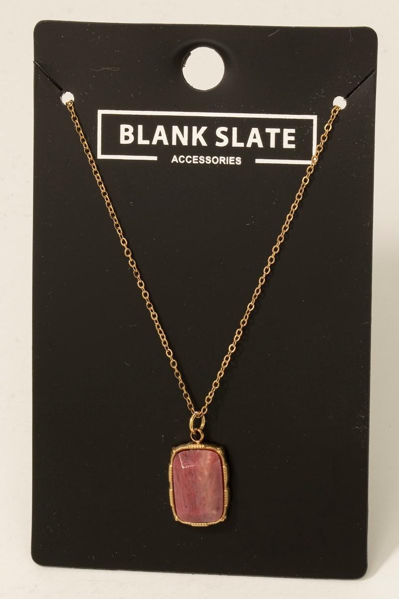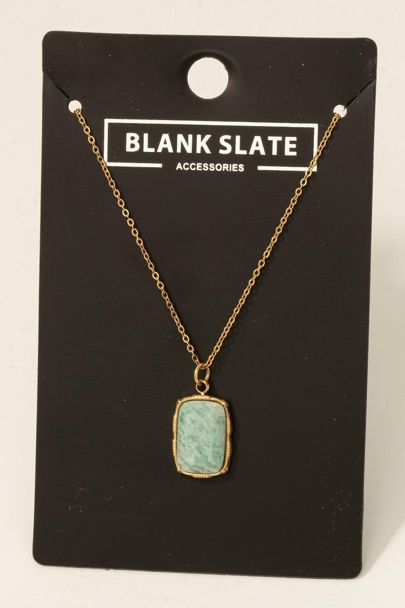 Stainless Steel Rectangle Stone Pendant Necklace
