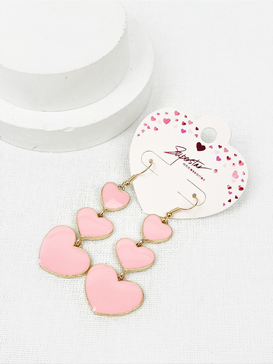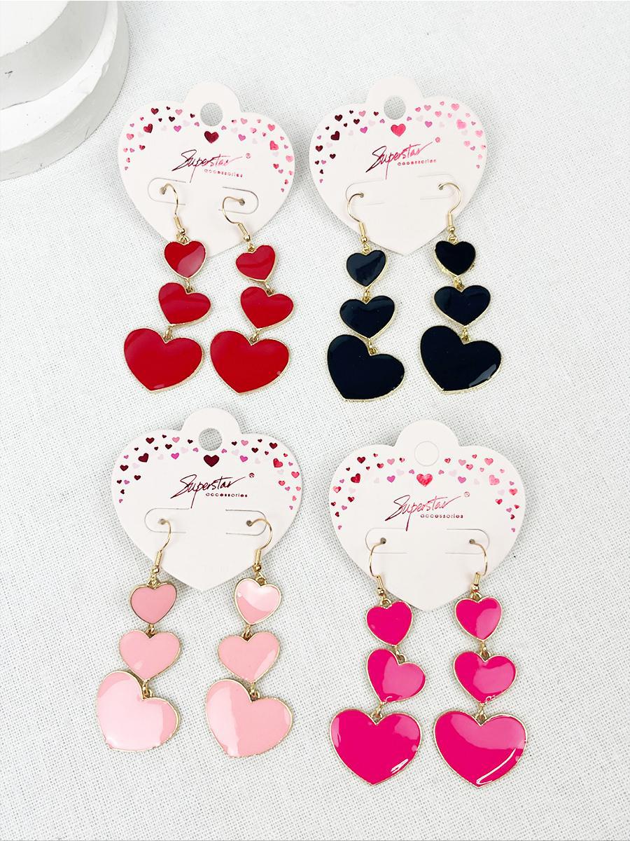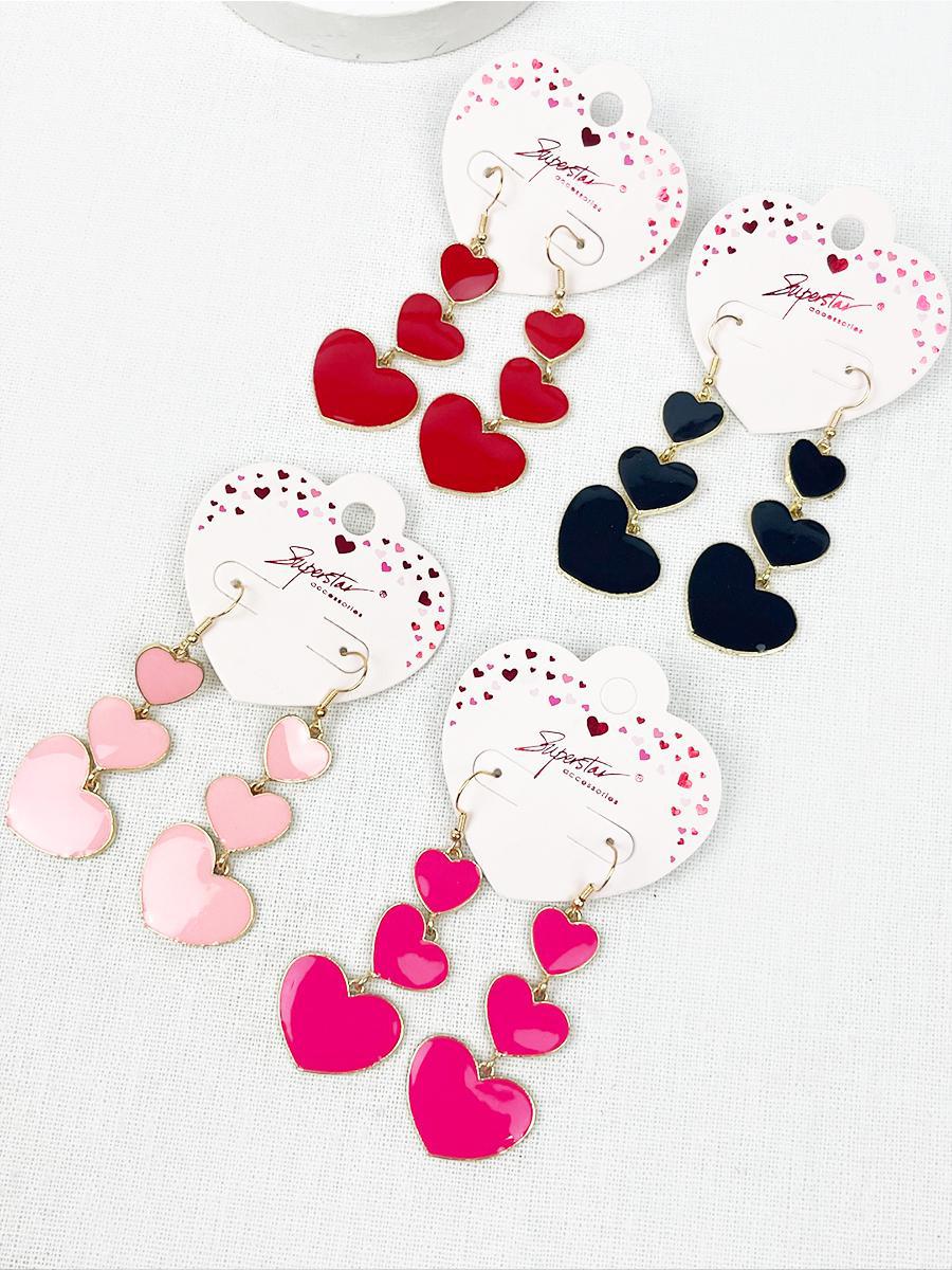 Graduating Size Color Heart Dangle Earrings