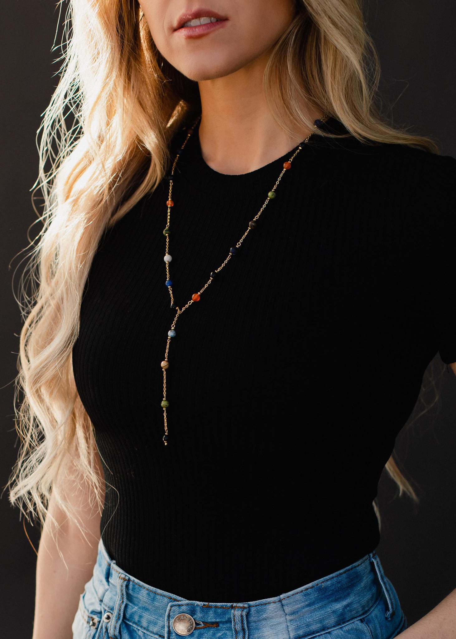 Gold & Multicolored Bead Lariat Necklace