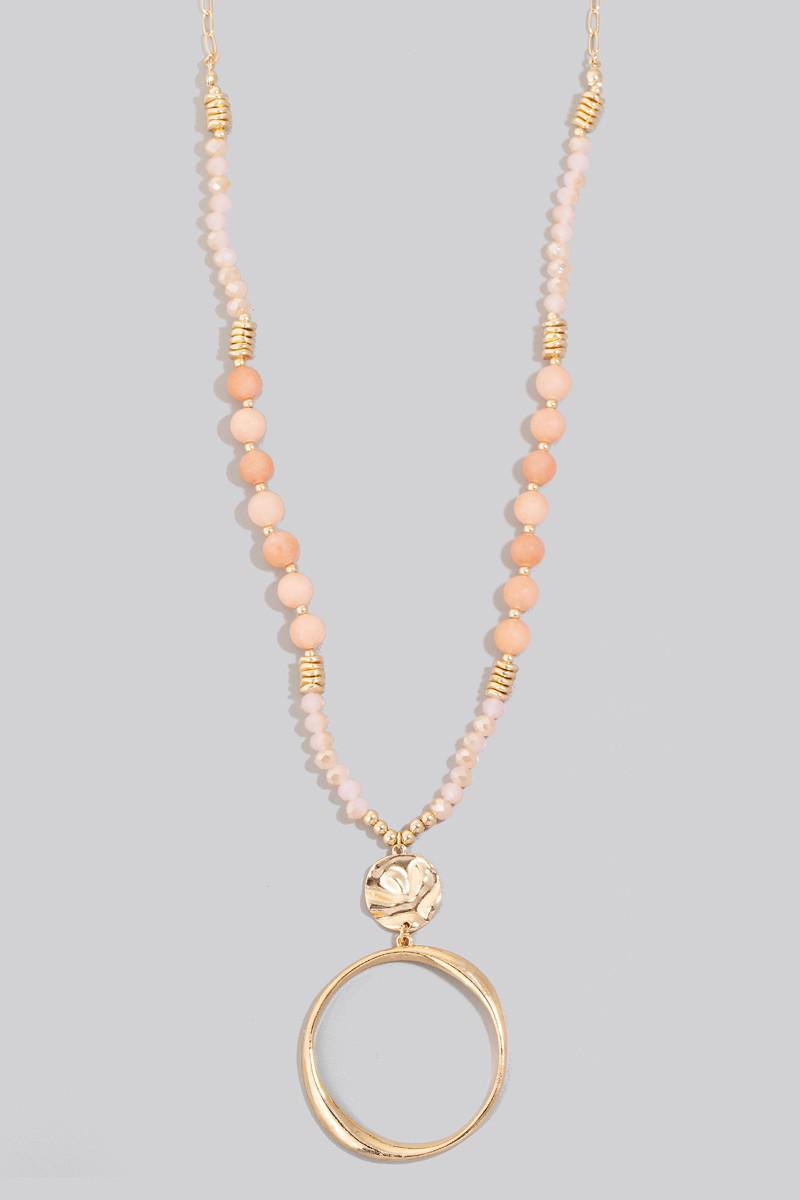 Hoop Pendant Stone Beaded Long Chain Necklace